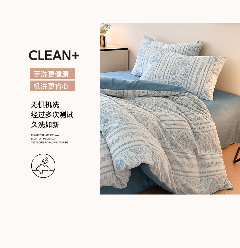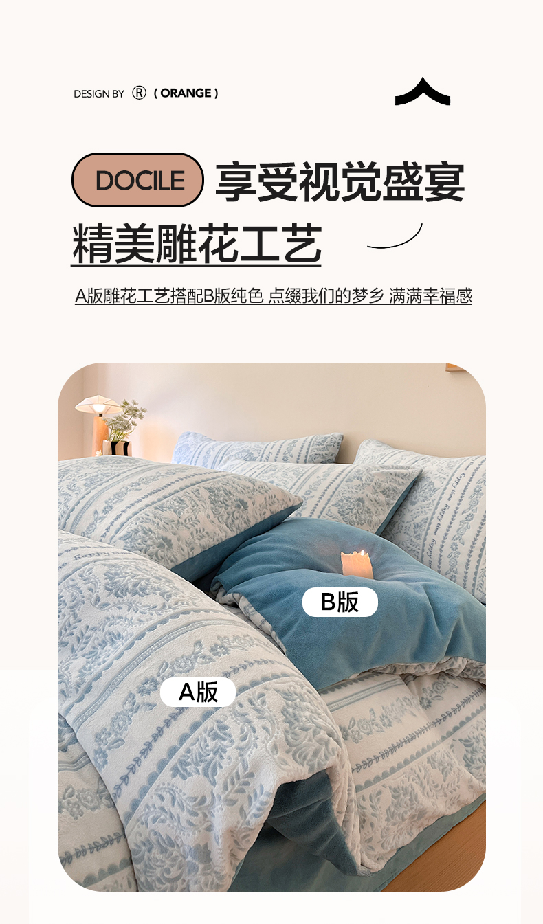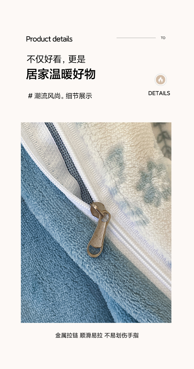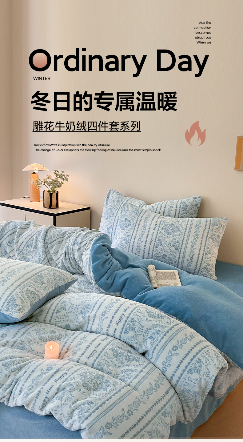 商品名称:雅居纺家纺 2025新款花卉雕花绒加厚保暖四件套 法式风情-蓝
