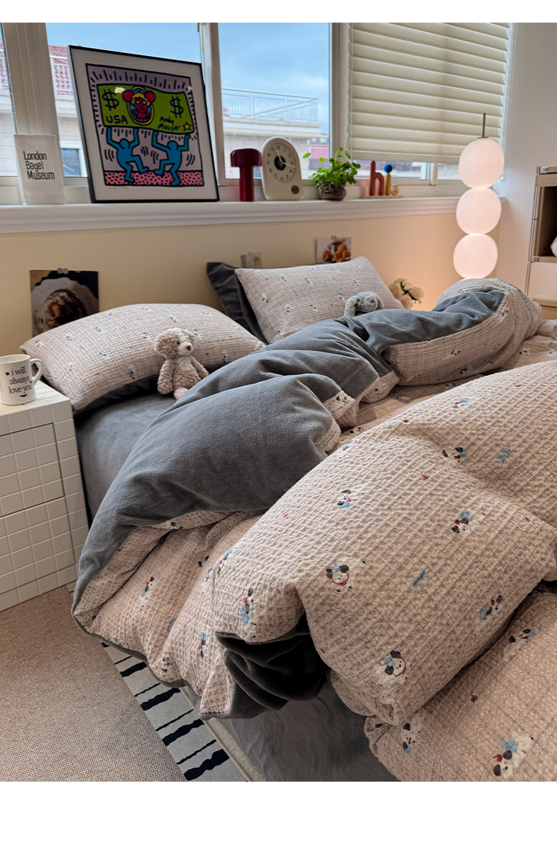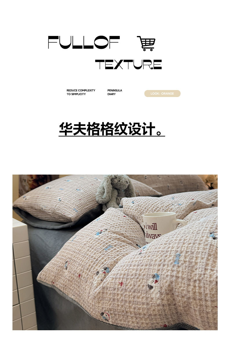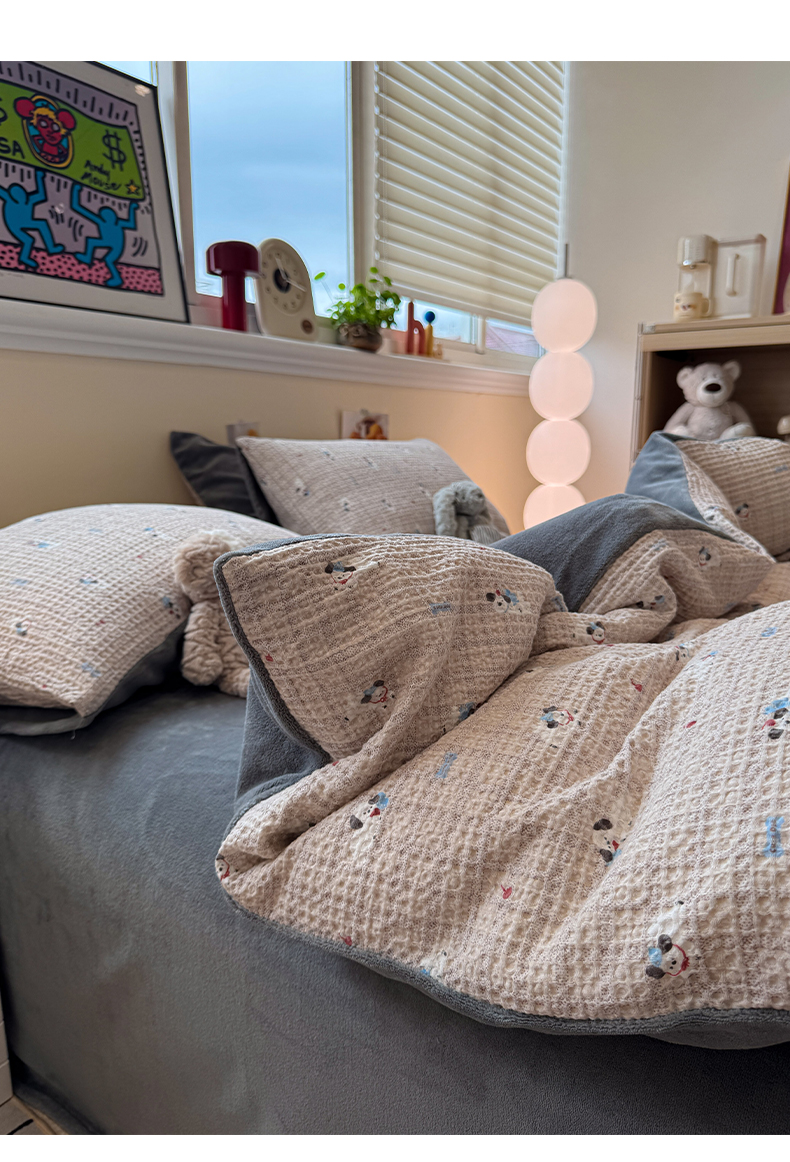 当前位置: 91家纺网 > 商品网购 > 床品套件 > 四件套 > 全棉普通四件套 > 雅居纺家纺 2025新款全棉华夫格+牛奶绒印花四件套 华夫格-牛奶绒 深灰小狗