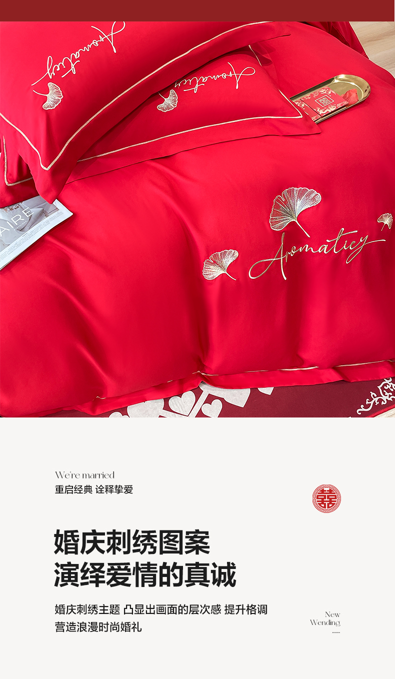 花愿(原花纪) 2026新款水洗棉刺绣婚庆四件套系列 丹枫迎喜