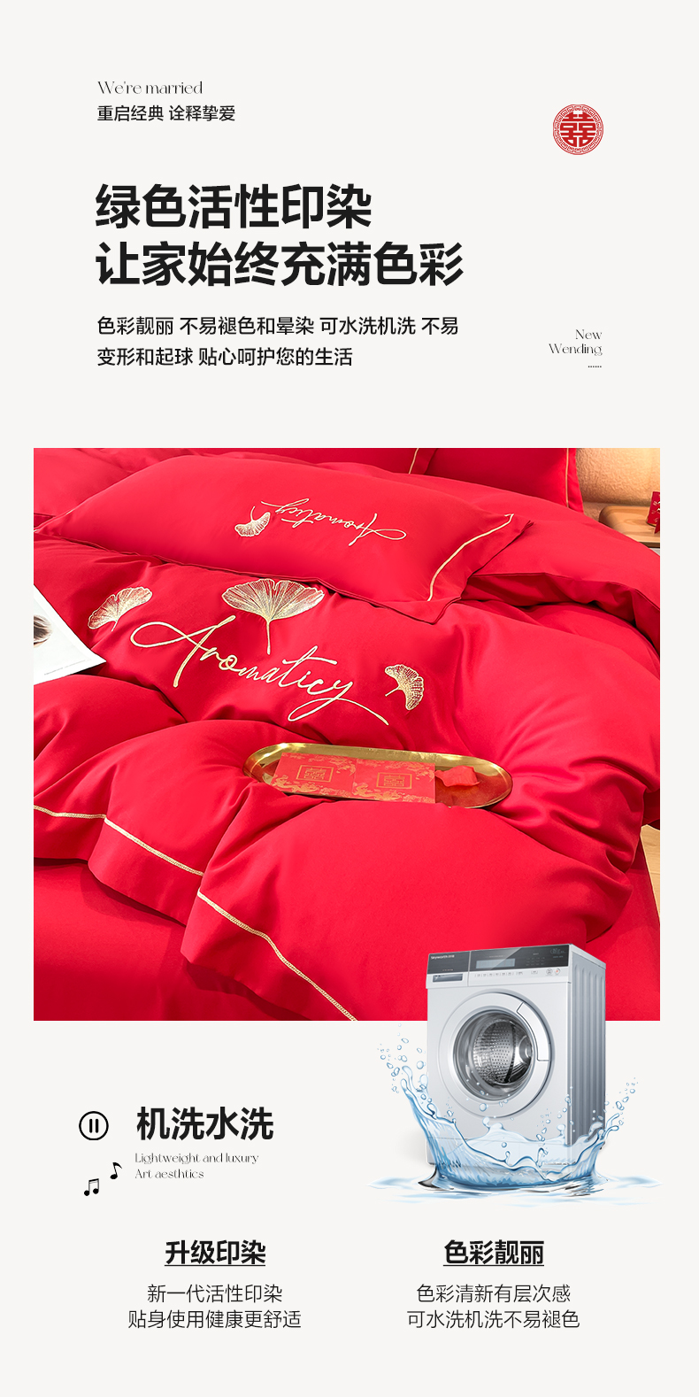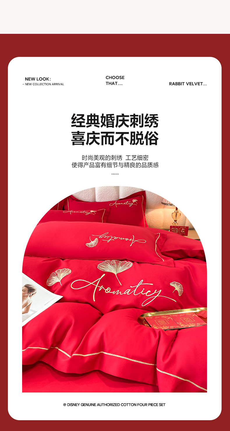 商品名称:花愿(原花纪) 2026新款水洗棉刺绣婚庆四件套系列 丹枫迎喜