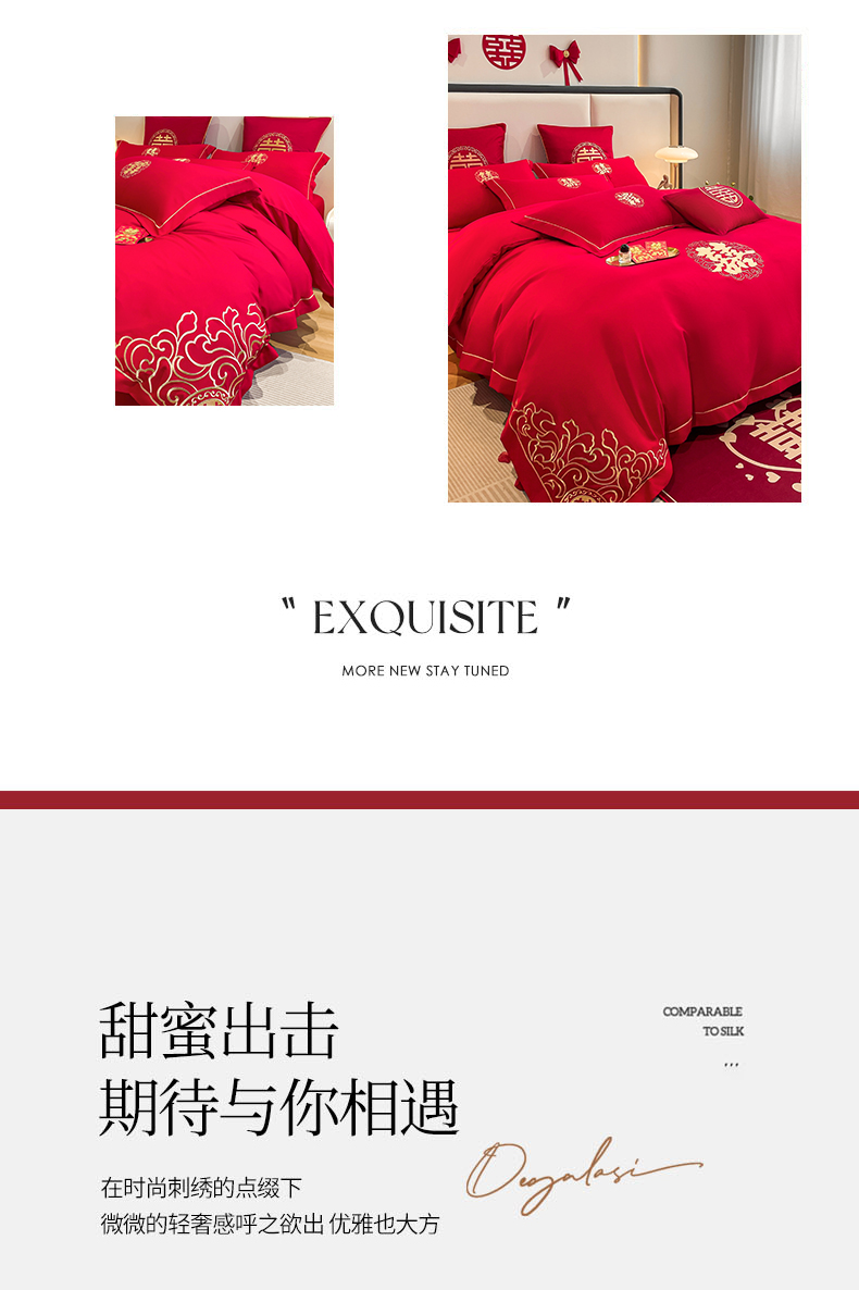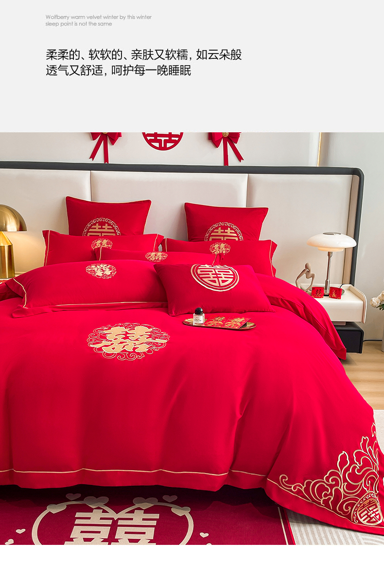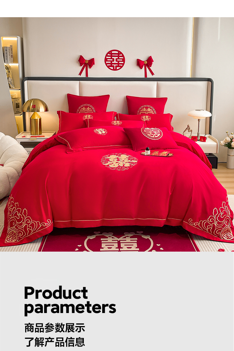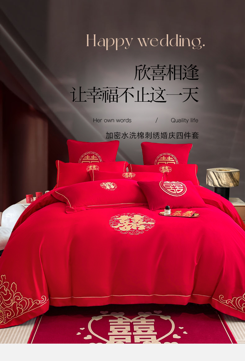 (总)花愿(原花纪) 2026新款婚庆刺绣四件套(礼盒款),浪漫花园-红,浪漫一生,龙凤呈祥,满心欢喜,天赐良缘,喜气洋洋,祥瑞,喜结良缘