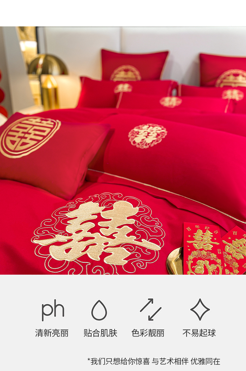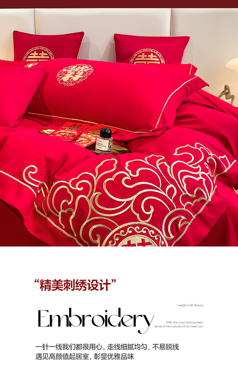 商品名称:花愿(原花纪) 2026新款婚庆刺绣四件套(礼盒款) 祥瑞