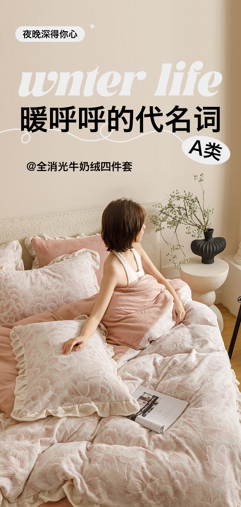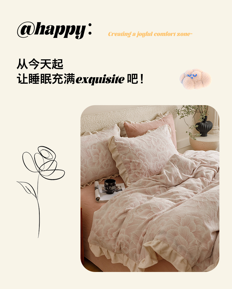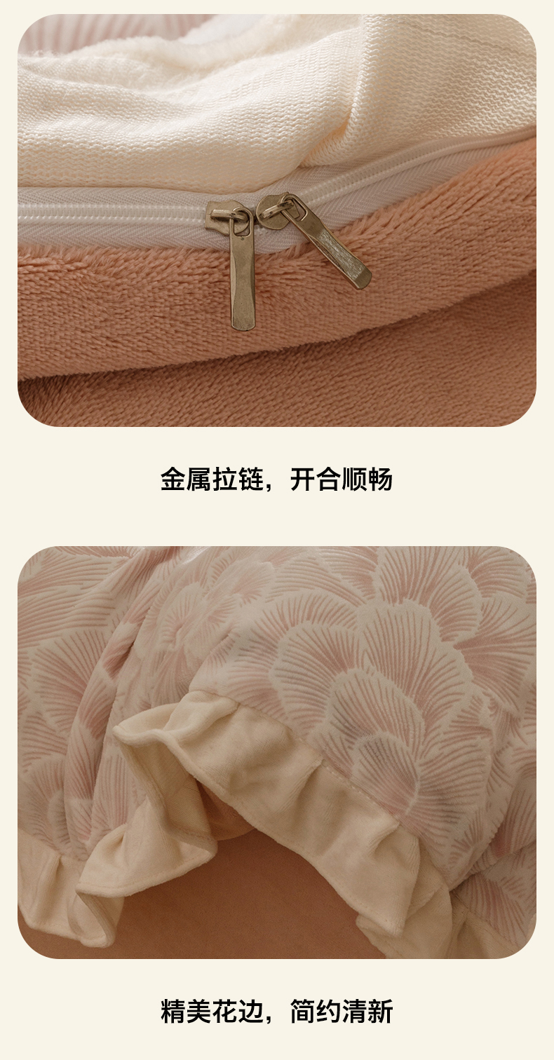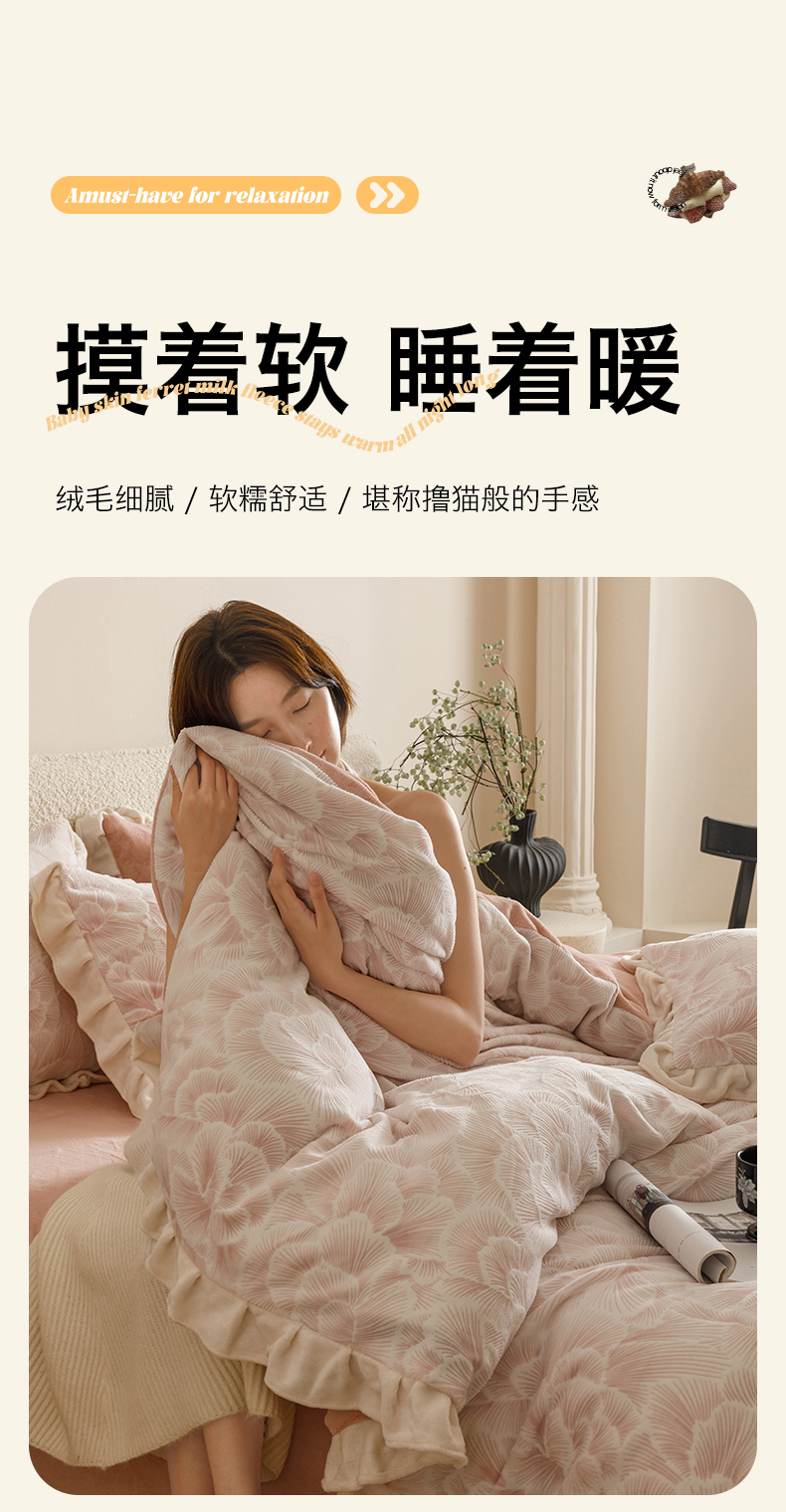 当前位置: 91家纺网 > 商品网购 > 床品套件 > 四件套 > 牛奶绒四件套 > 恬思语家纺 2025新款亲肤舒适韩风小清新花边牛奶绒四件套 百花绽放-粉