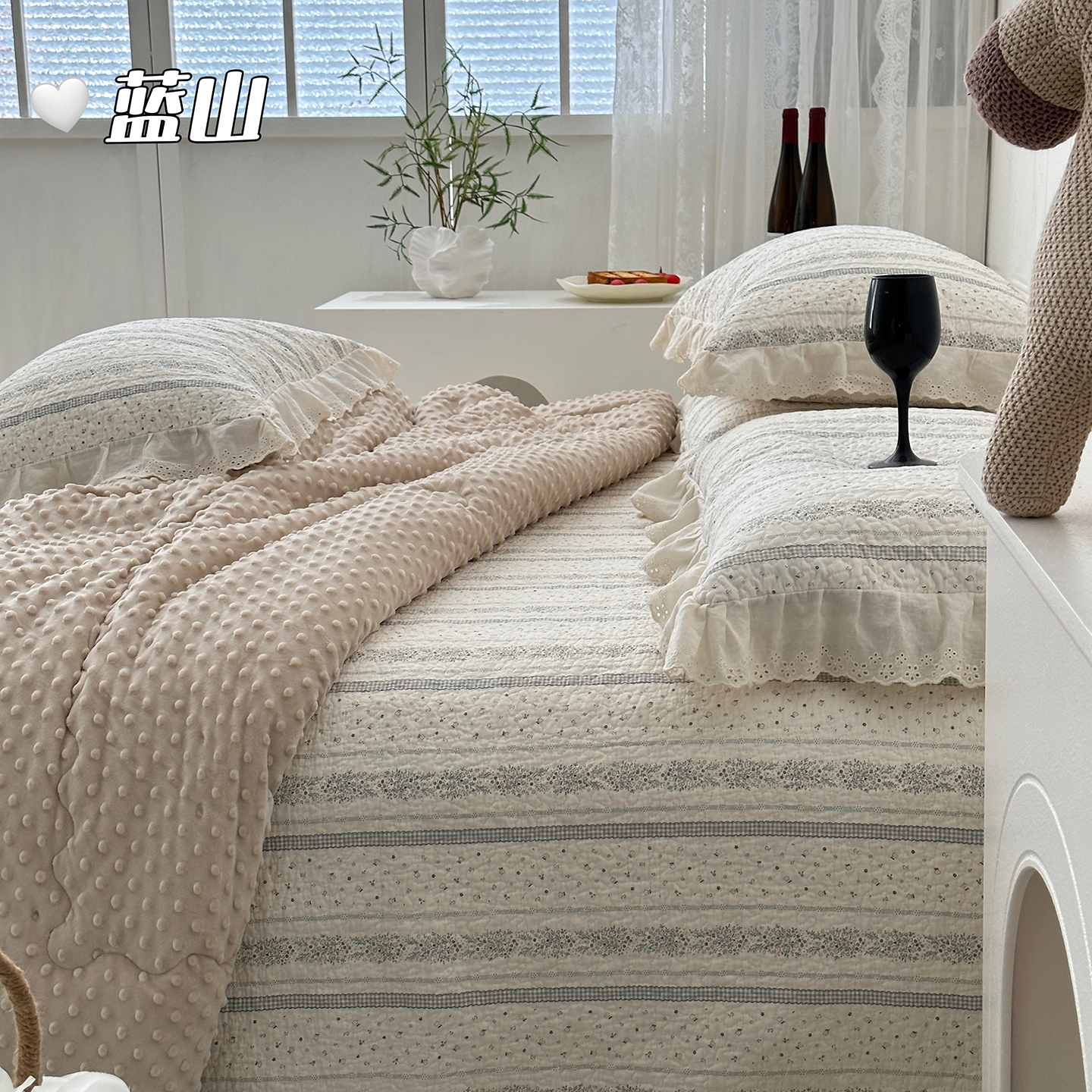 商品名称:佰织鑫家居 2025秋冬新品全棉法式床盖款豆豆被四件套 甜心格