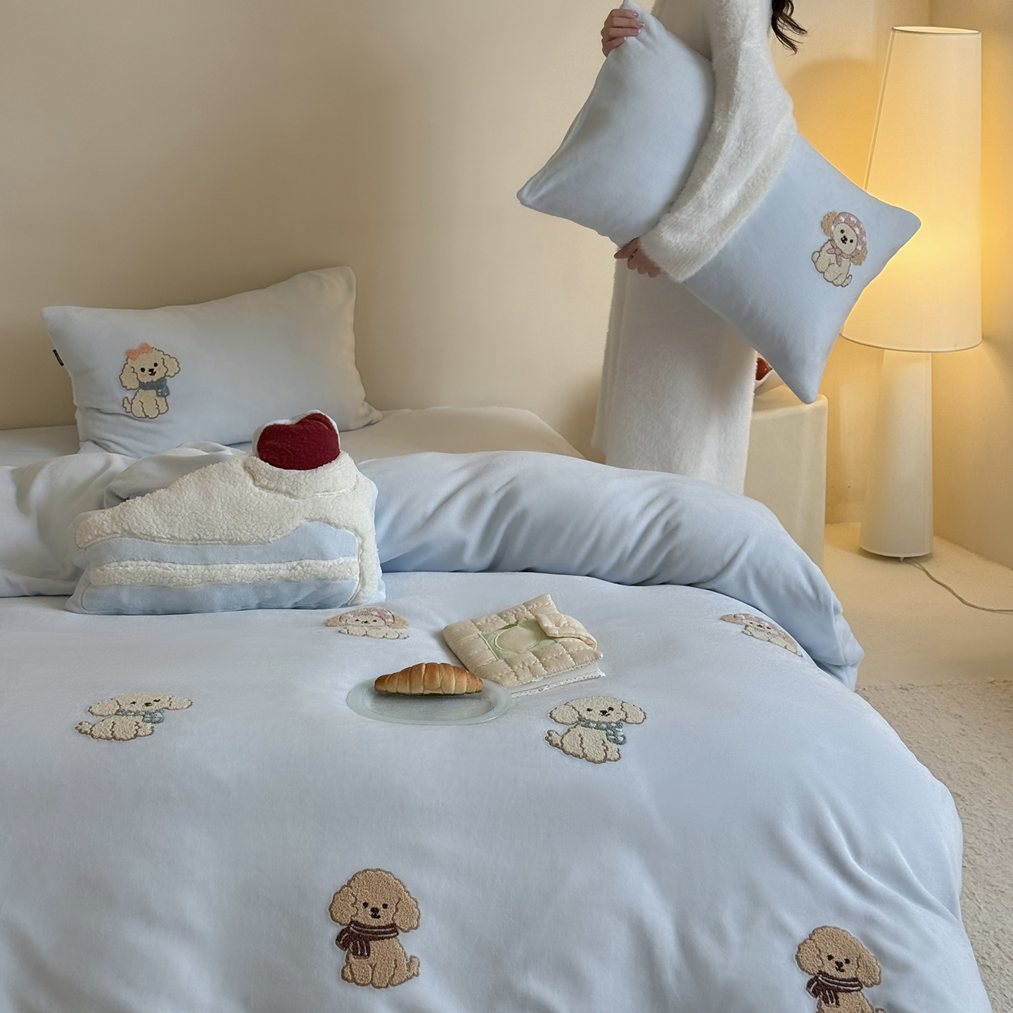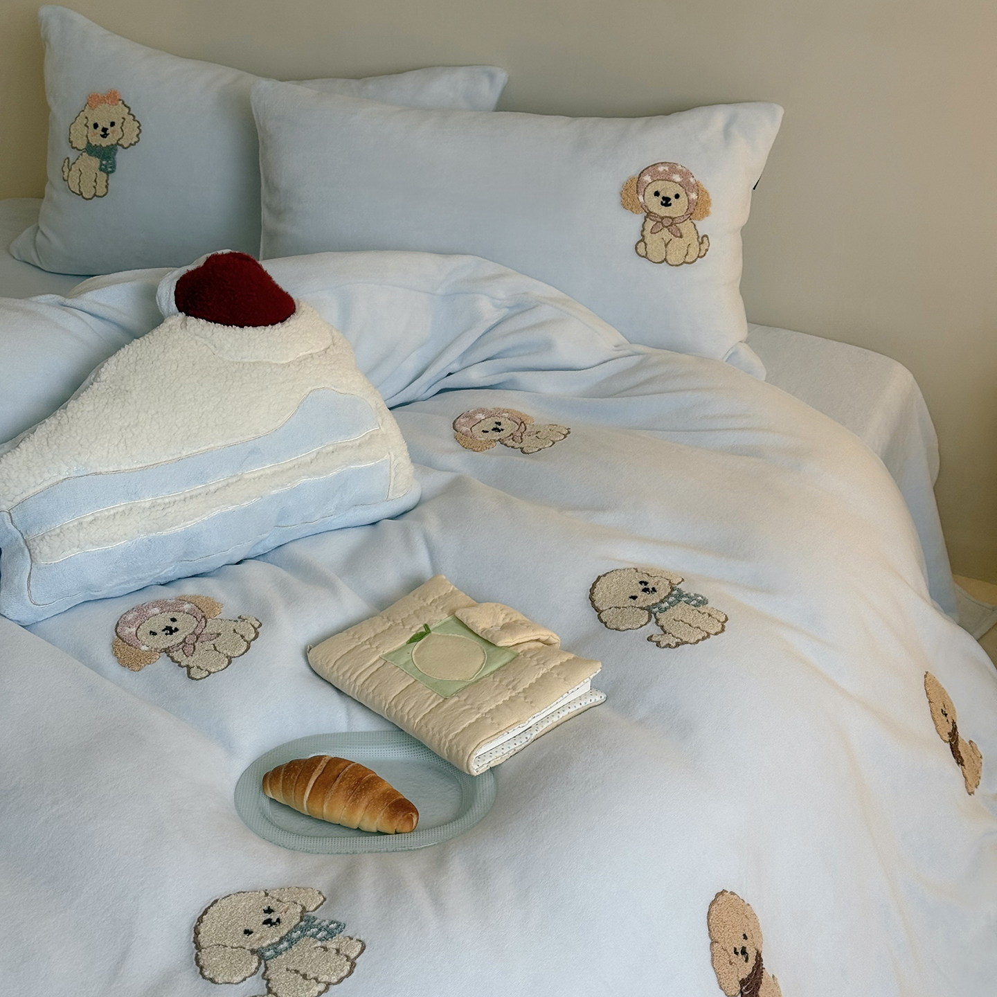 当前位置: 91家纺网 > 商品网购 > 床品套件 > 四件套 > 牛奶绒四件套 > 鹿班家居 2025新款冬季高克重牛奶绒毛巾绣系列四件套-布迪狗狗 蓝色
