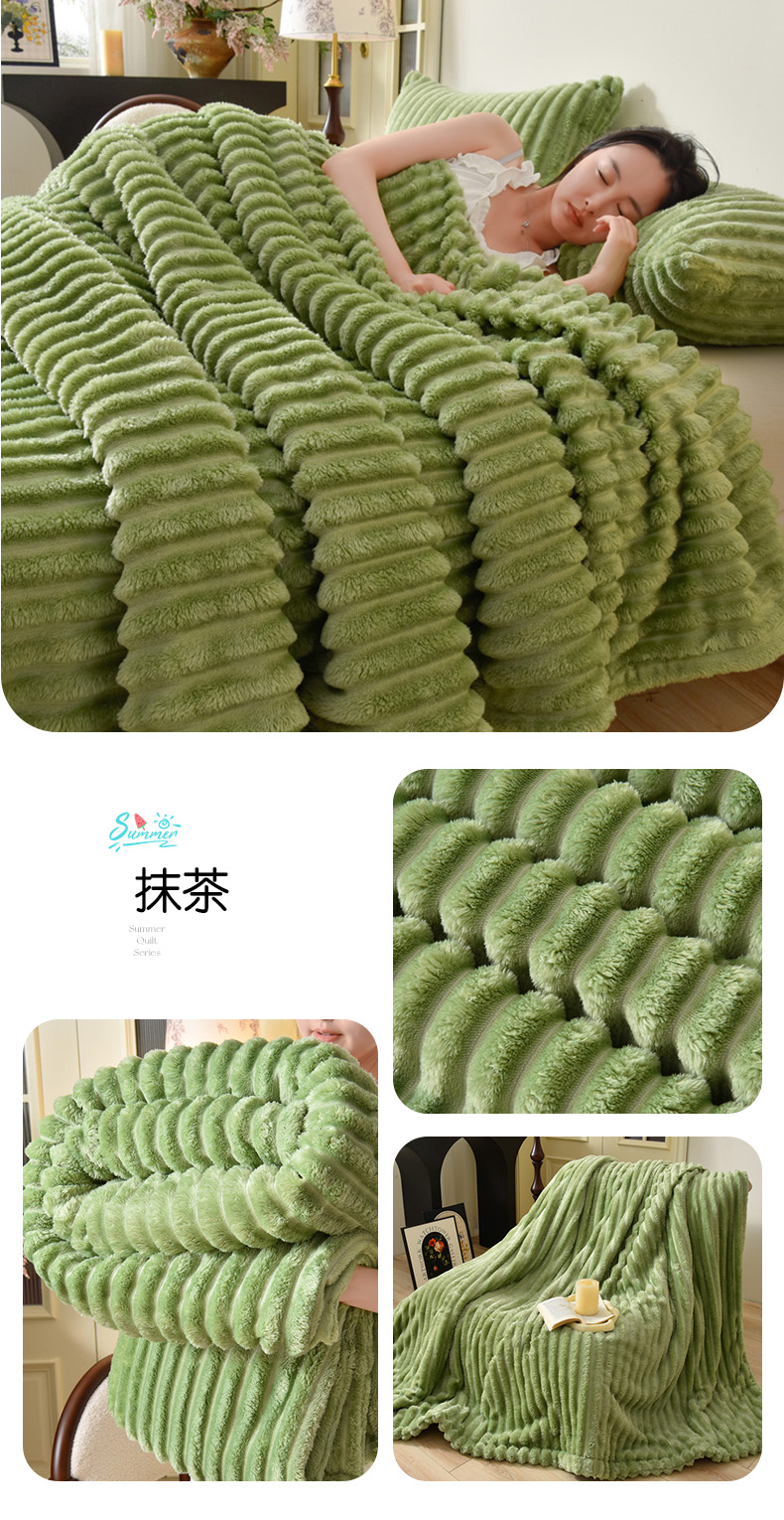 商品名称:圣靓 2025新款高克重牛奶绒抽条毛毯 抹茶