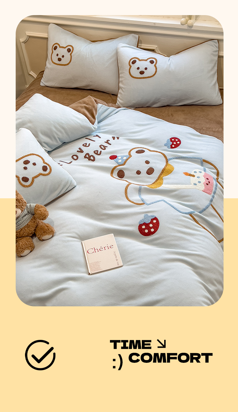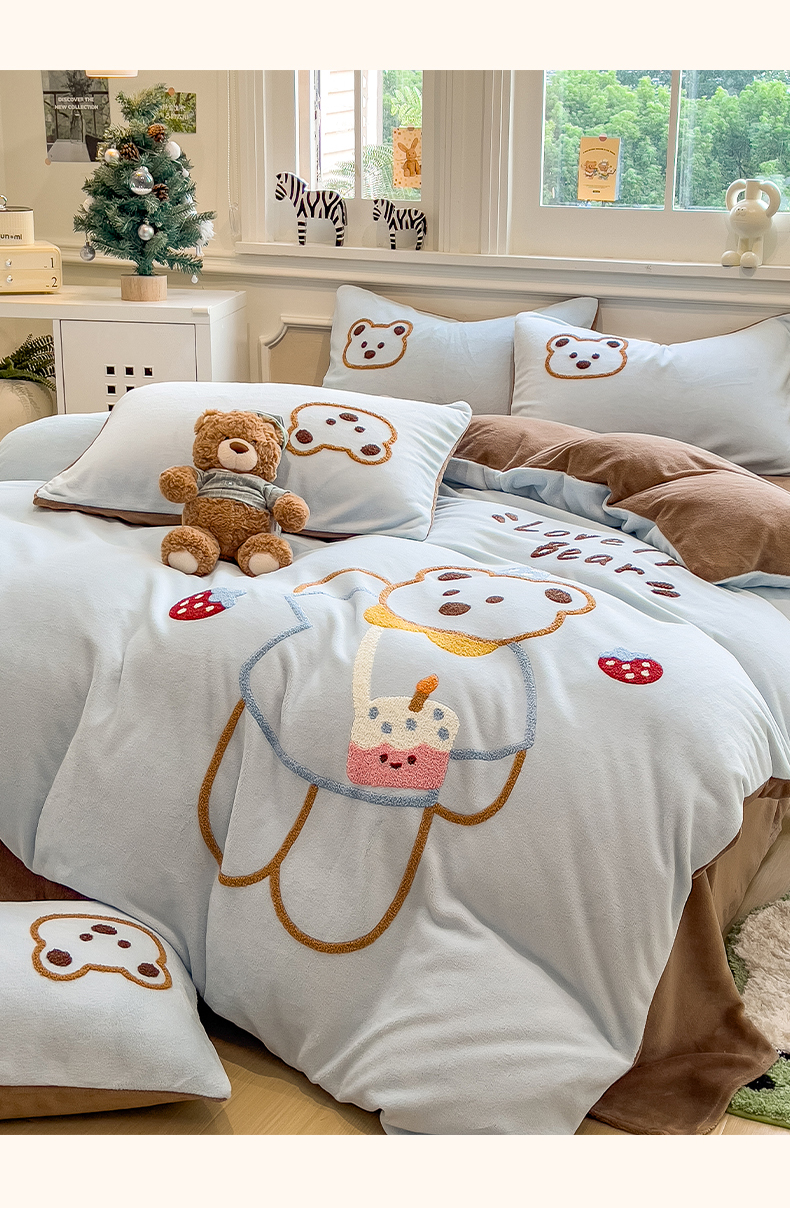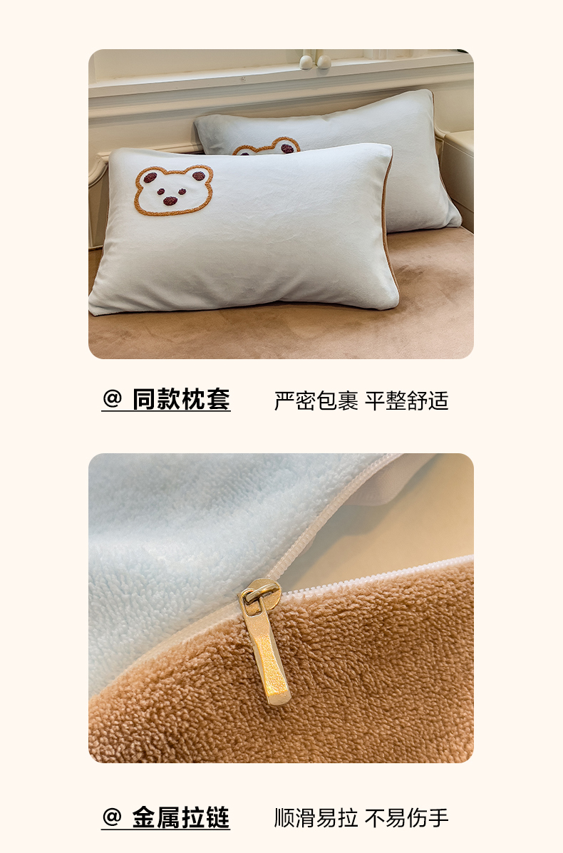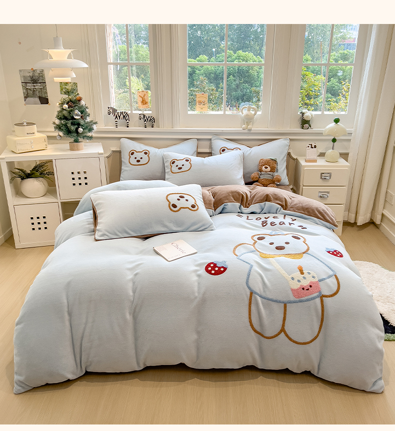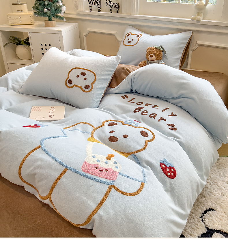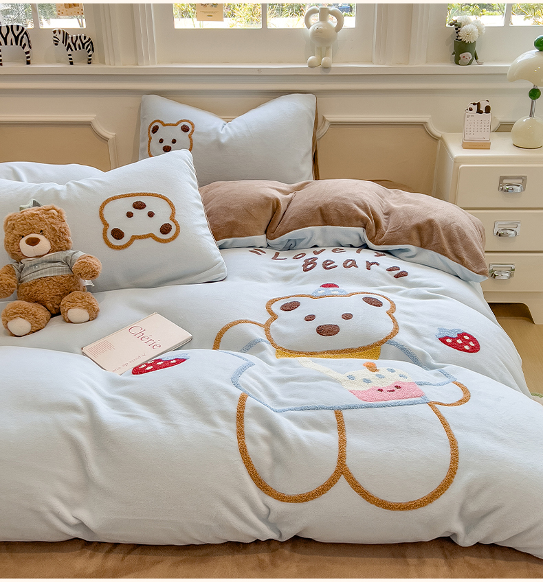 当前位置: 91家纺网 > 商品网购 > 床品套件 > 四件套 > 牛奶绒四件套 > 悦织语 2025新款加厚200克高克重毛巾绣牛奶绒四件套 蛋糕熊-浅蓝