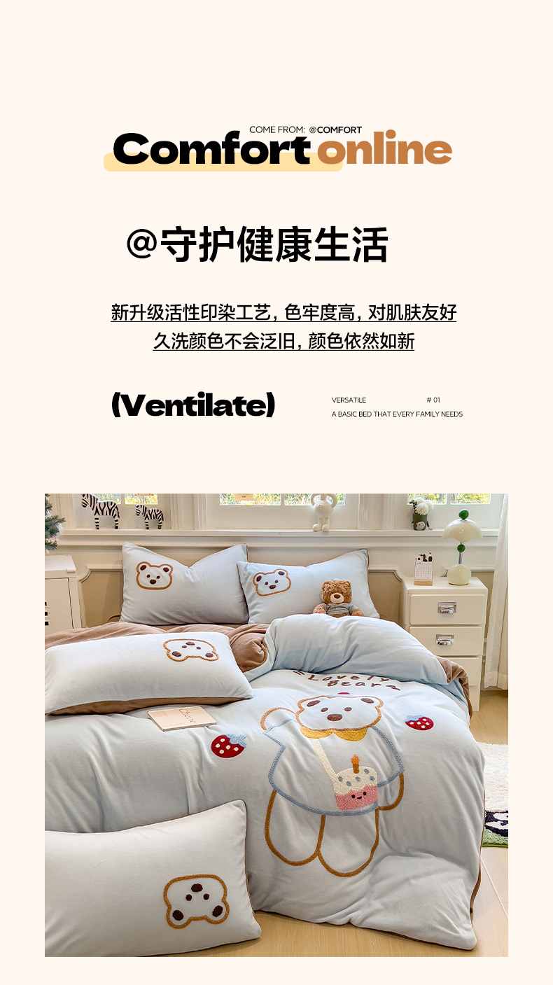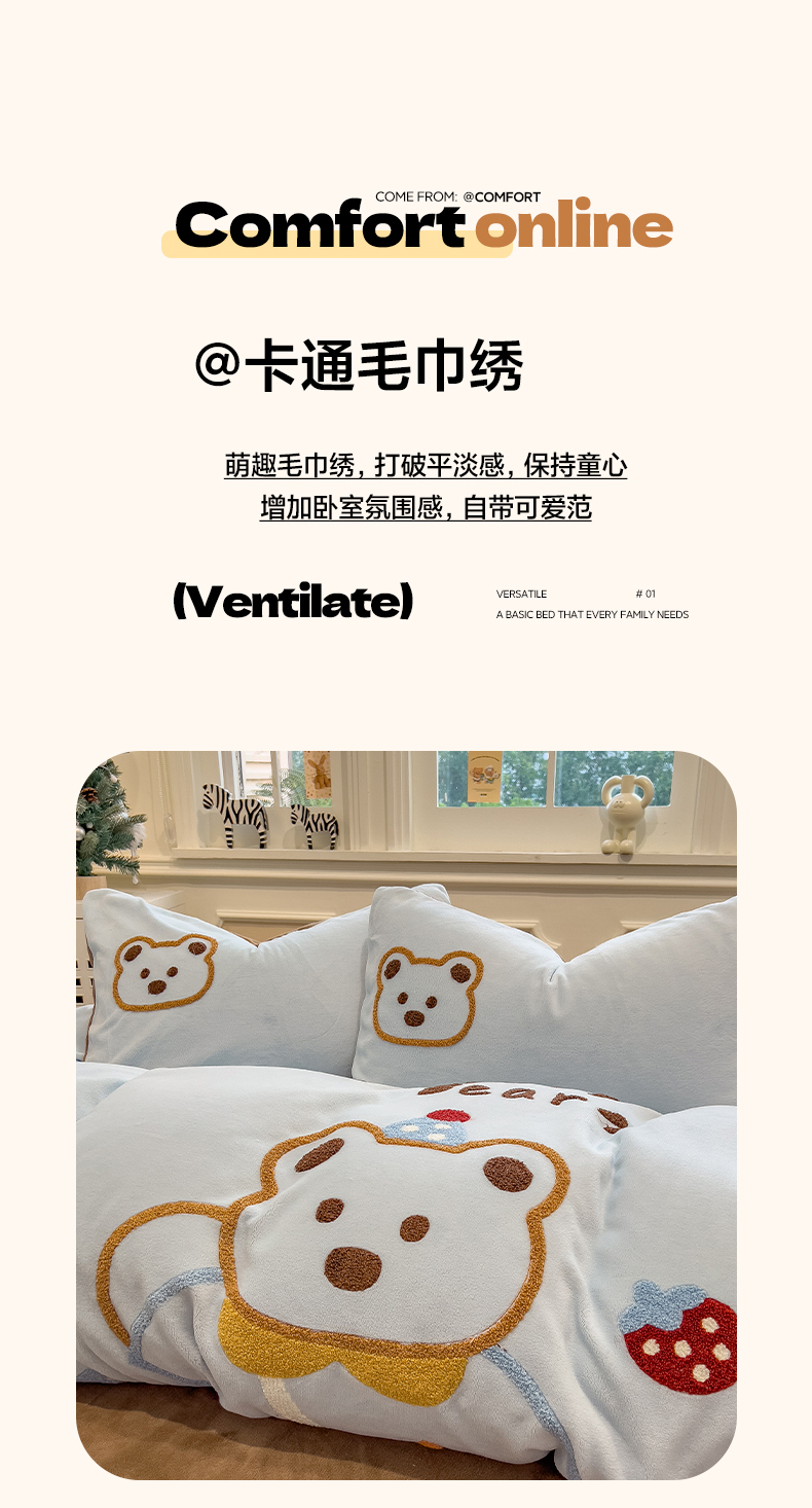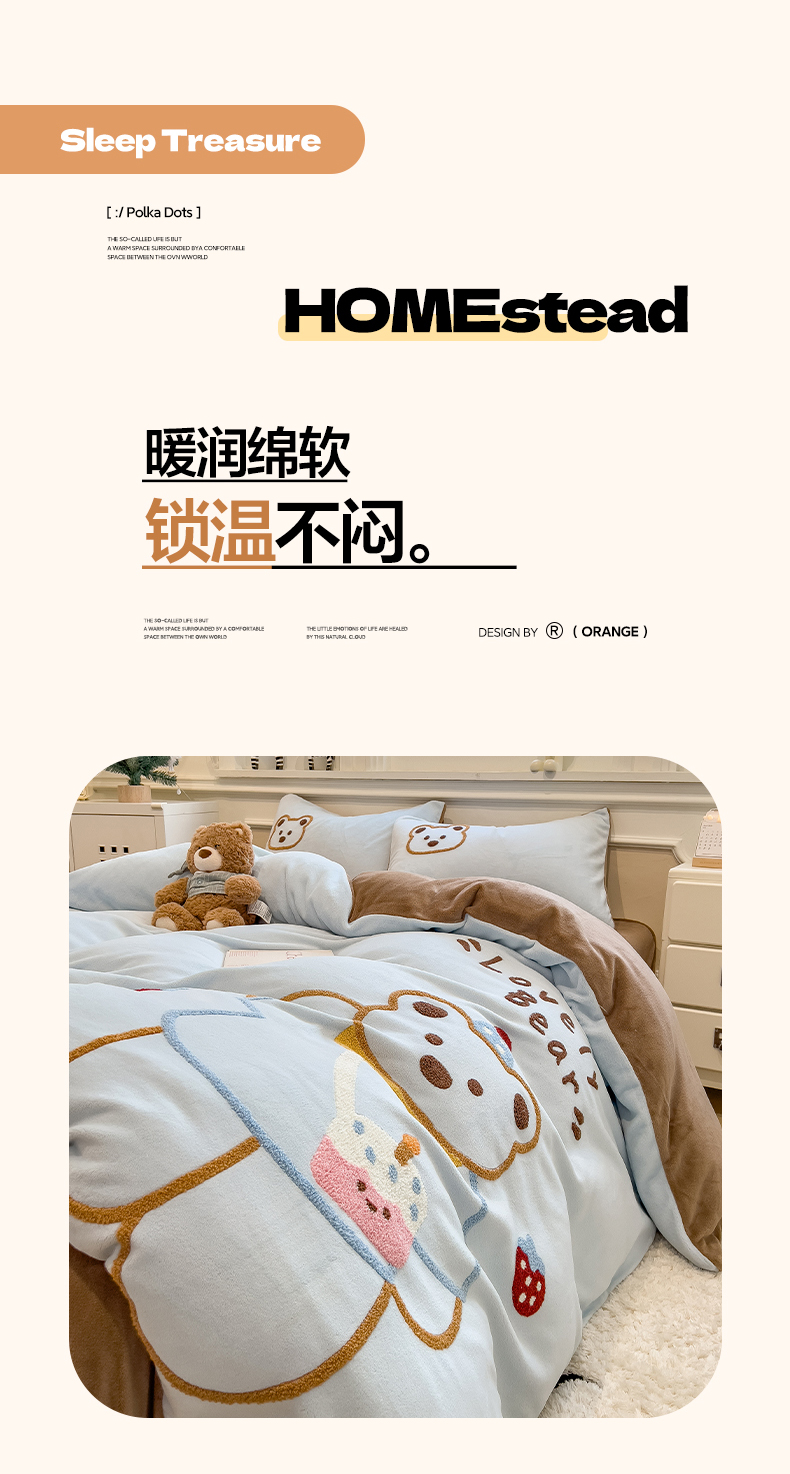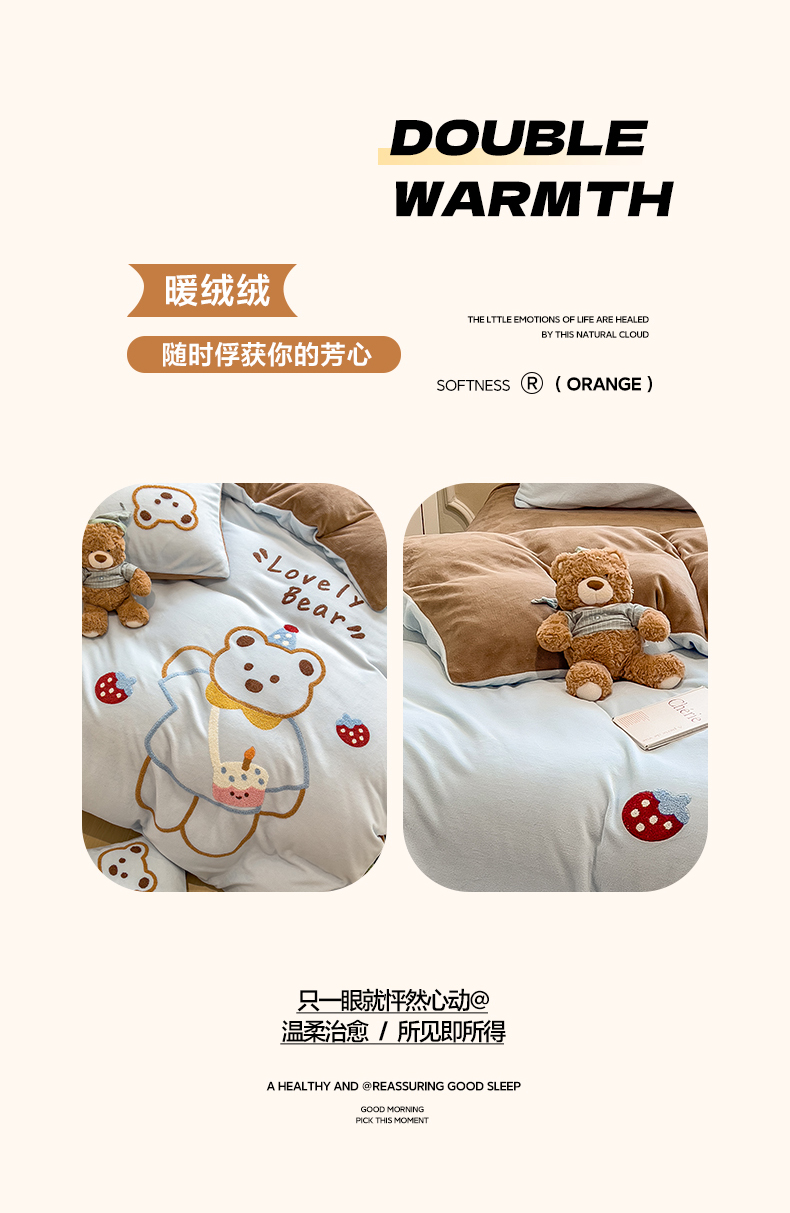 当前位置: 91家纺网 > 商品网购 > 床品套件 > 四件套 > 牛奶绒四件套 > 悦织语 2025新款加厚200克高克重毛巾绣牛奶绒四件套 蛋糕熊-浅蓝