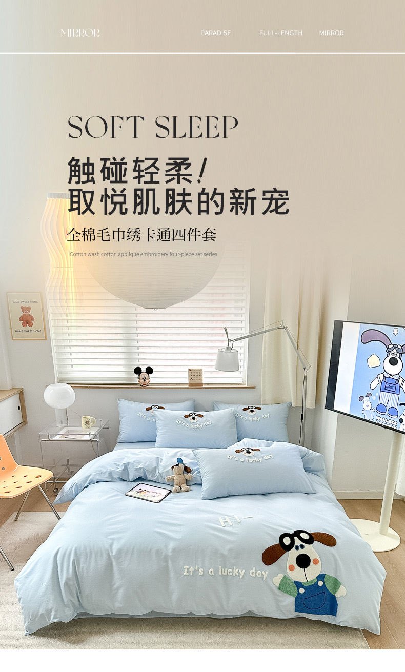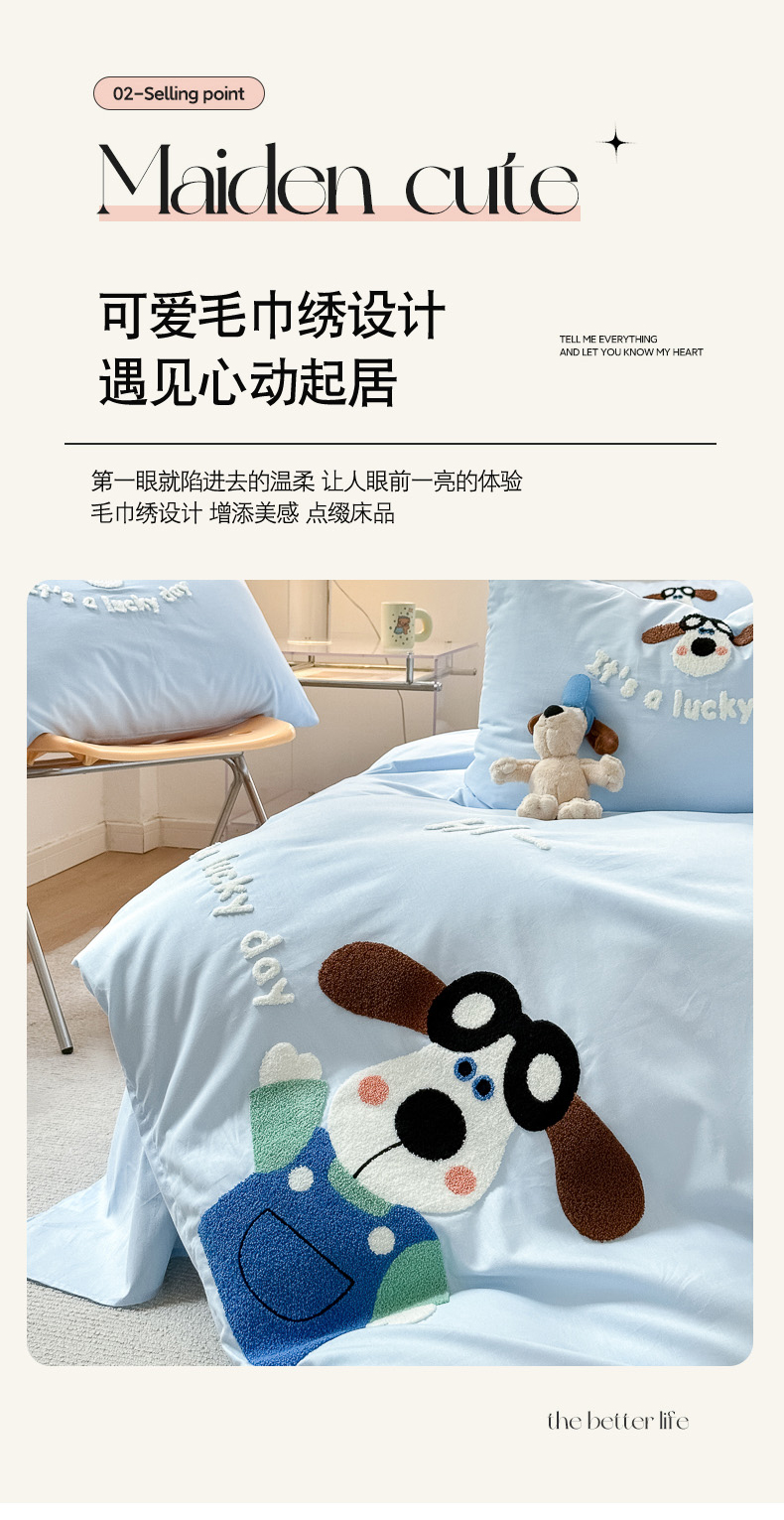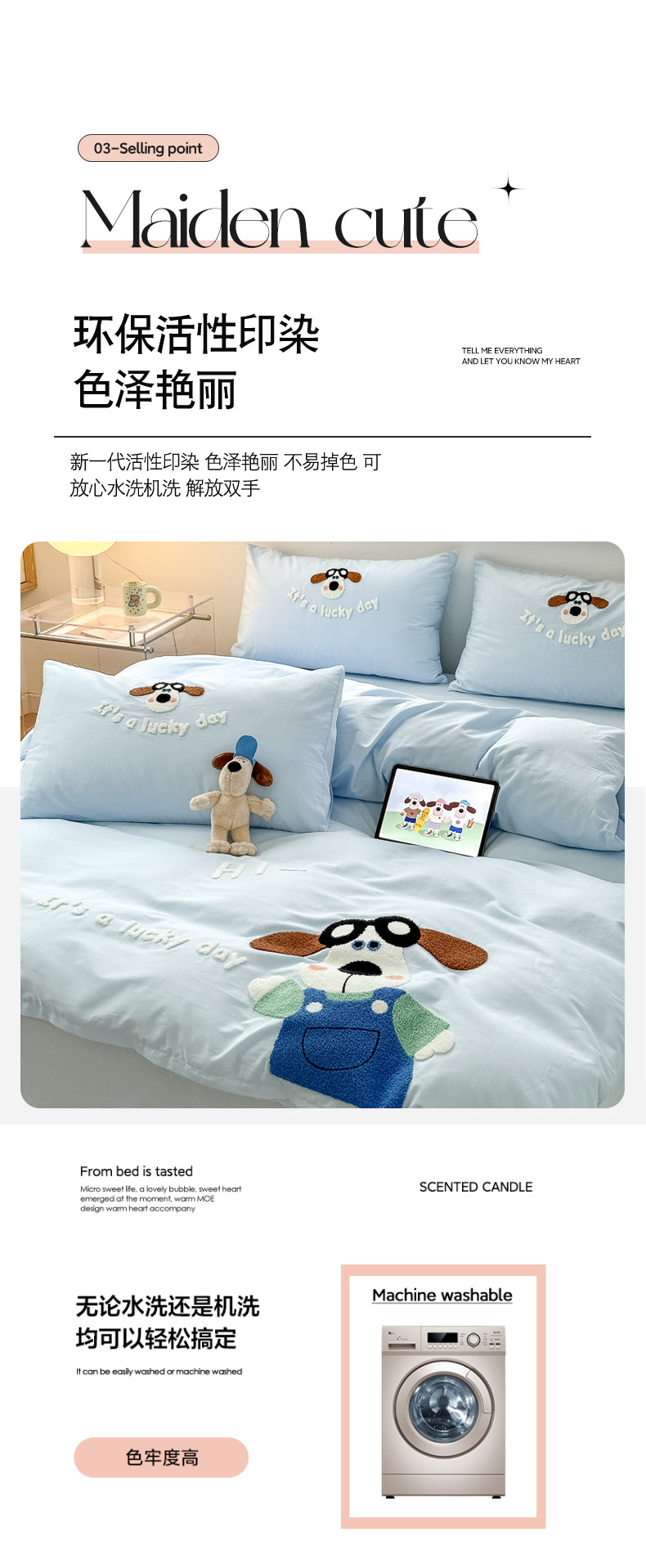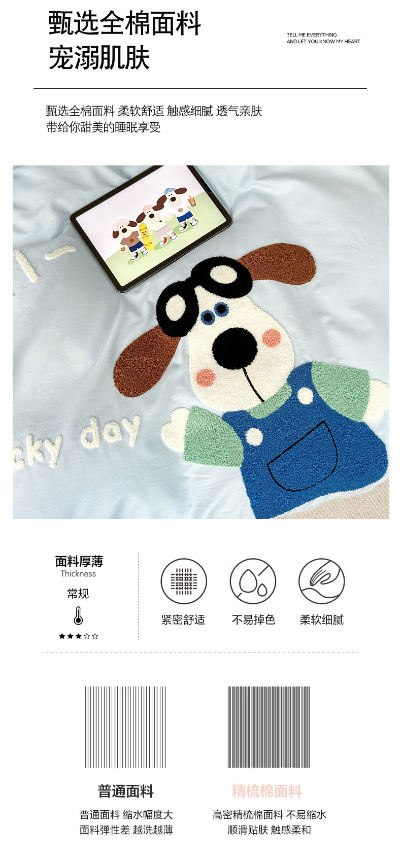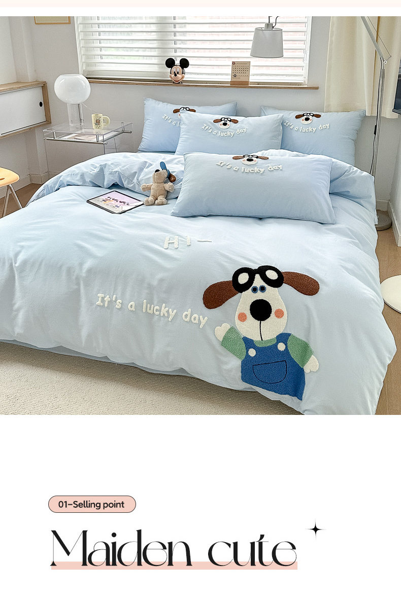 当前位置: 91家纺网 > 商品网购 > 床品套件 > 四件套 > 全棉普通四件套 > 如意朵 2025新款全棉纯棉小清新印花加绣花四件套 飞行狗