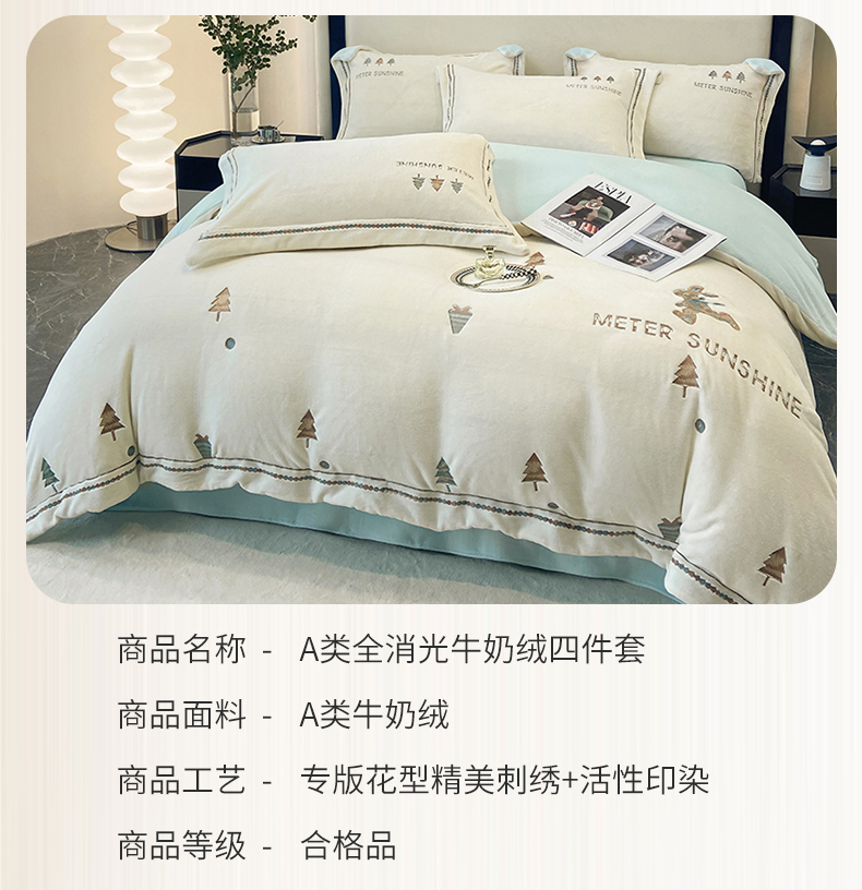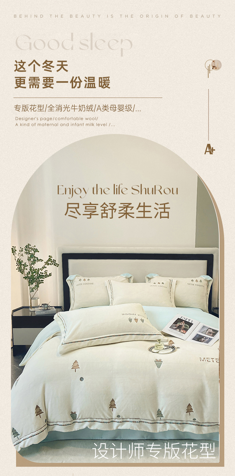 当前位置: 91家纺网 > 商品网购 > 床品套件 > 四件套 > 牛奶绒四件套 > 家居1号家纺 2025新款230克牛奶绒全消光冬季爆款四件套-唯美意境 唯美意境-奶昔白+湖蓝