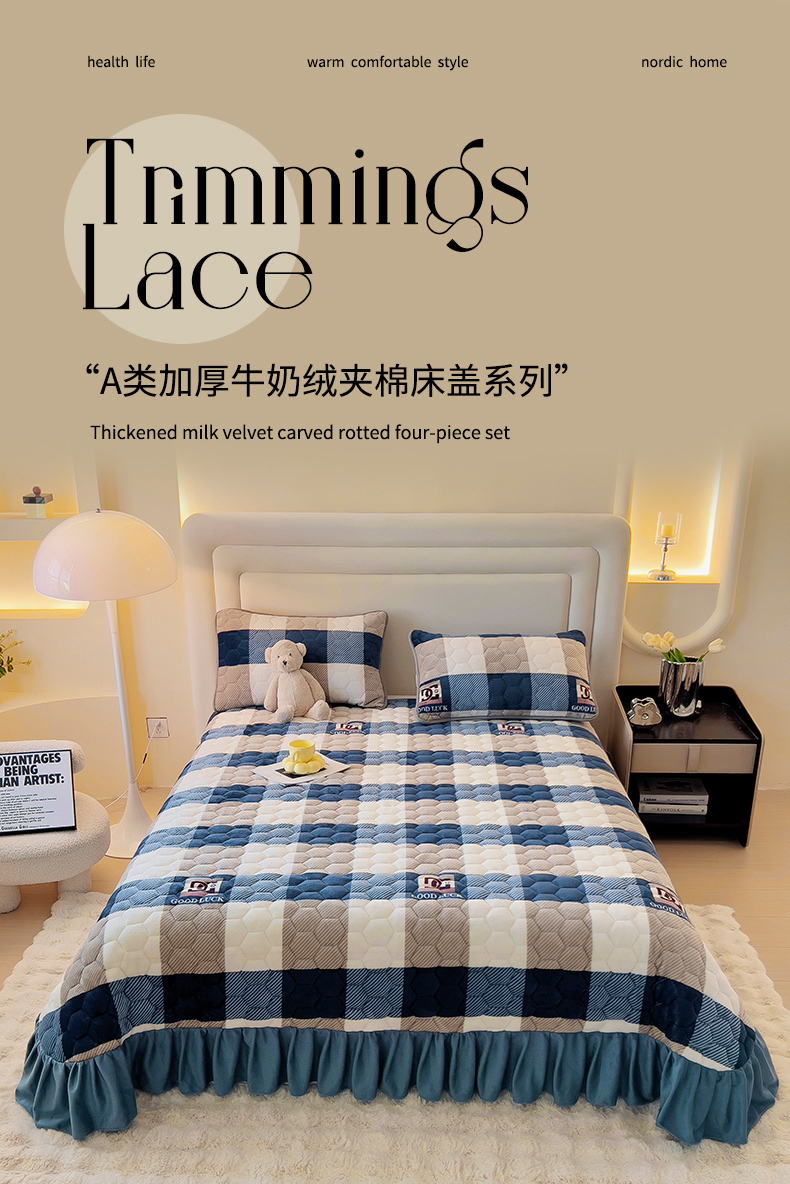 • 91家纺网 家纺一手货源 找家纺 情煊家纺 2025新款简约加厚A类牛奶绒夹棉印花床盖 童真