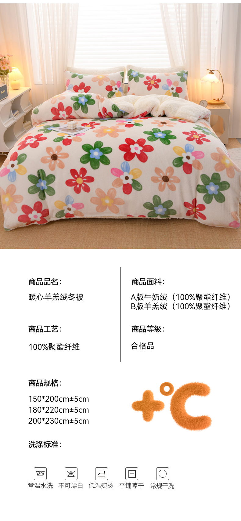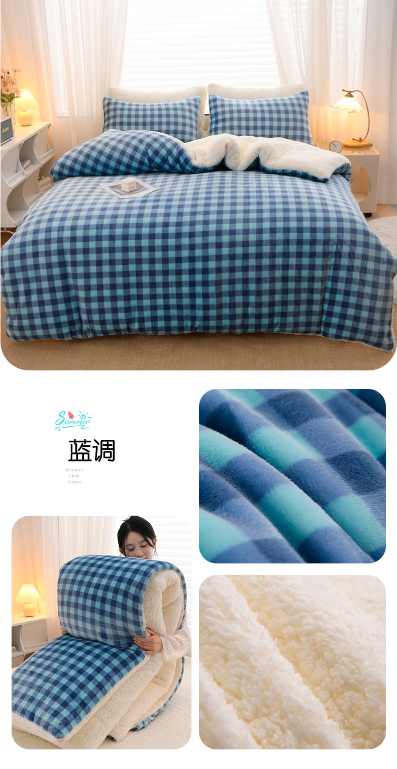 商品名称:圣楚家纺 2025秋冬新款亲肤舒适暖心羊羔绒牛奶绒AB面冬被被子被芯 蓝调
