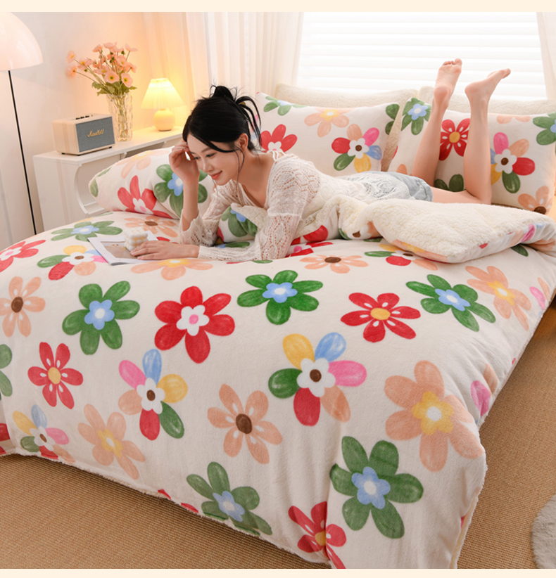(总)圣楚家纺 2025新款牛奶绒羊羔绒双层毯盖毯毯子,花漾色彩,蓝色天空,迷人花香,邂逅彩虹