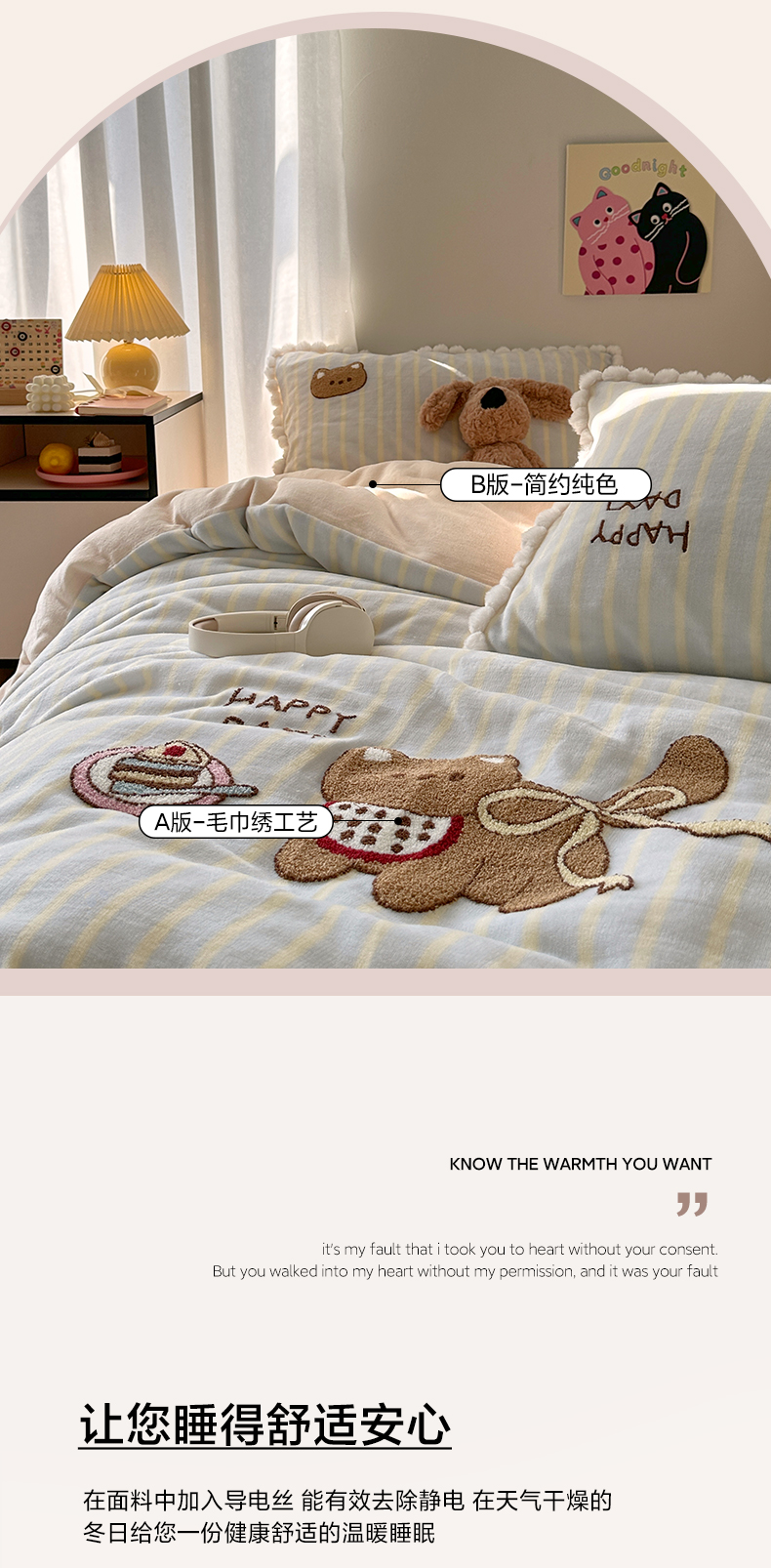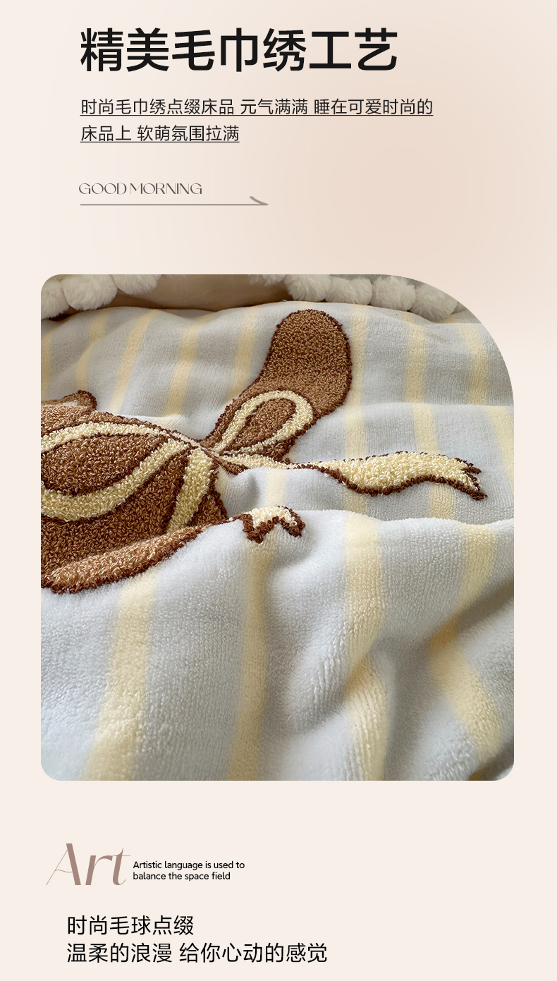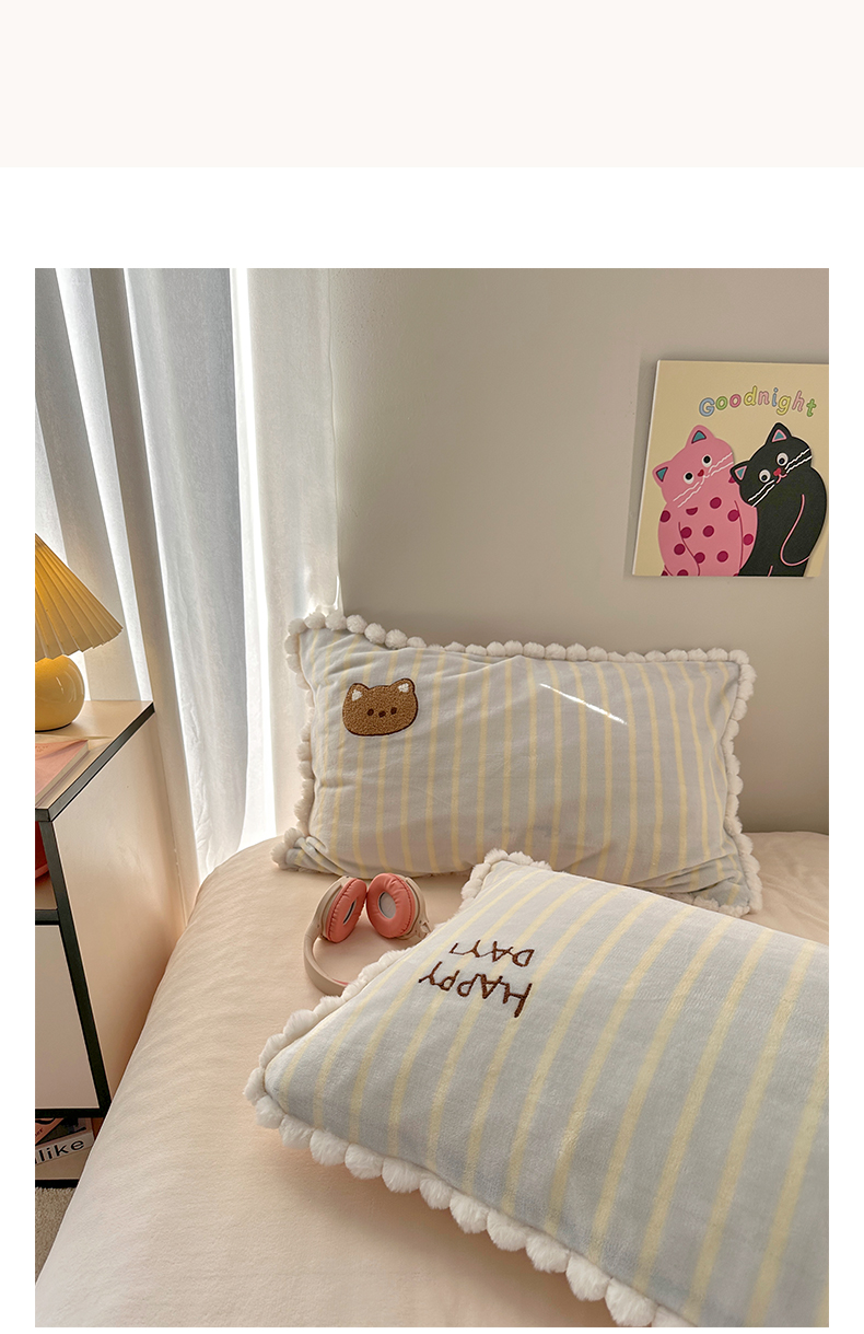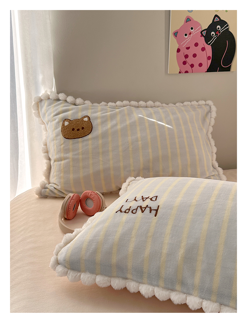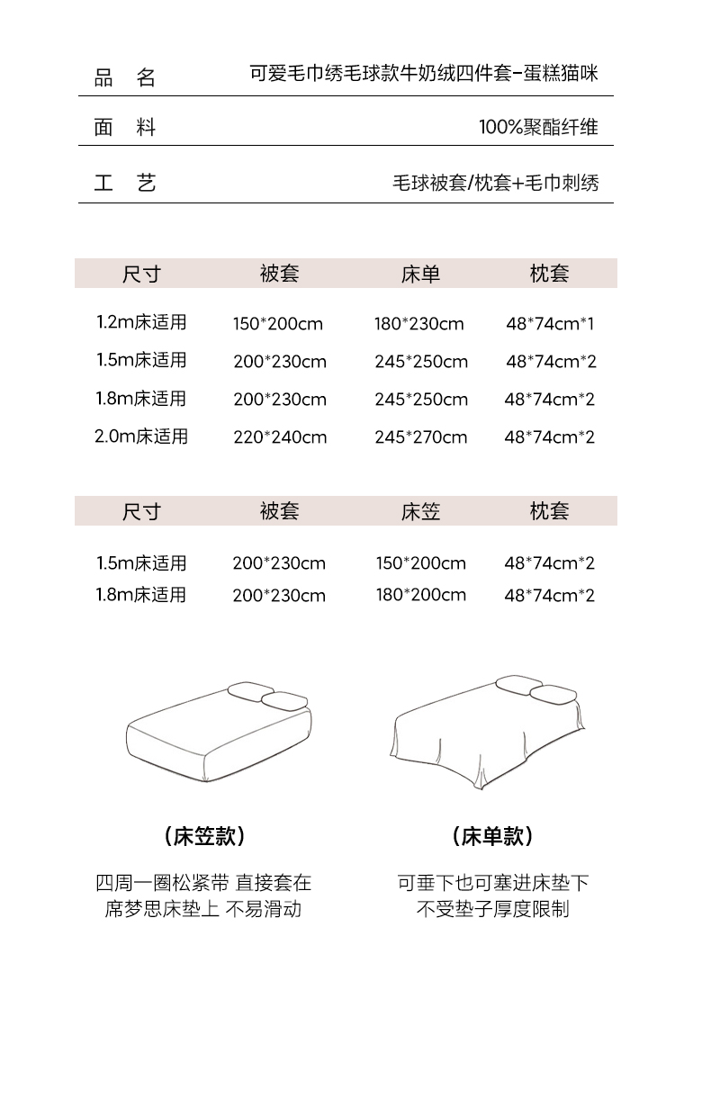商品名称:艾咪-Amy ntmy 2025新款可爱毛巾绣毛球款牛奶绒四件套-蛋糕猫咪 蛋糕猫咪-蓝