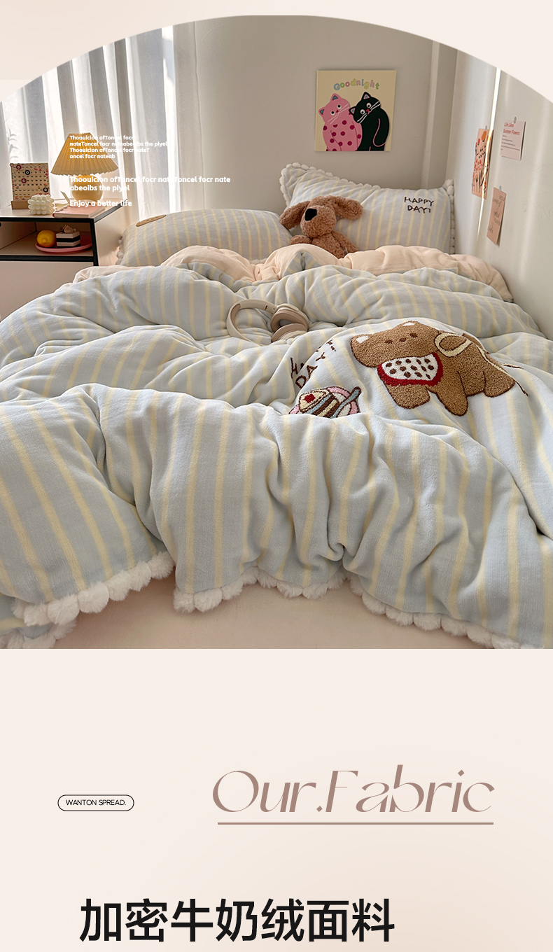(总)艾咪-Amy ntmy 2025新款治愈系条纹牛奶绒四件套,青柠奶绿,粉奈焦糖,粉奈新粉,拿铁焦糖,奶咖焦糖,青柠焦糖,香草焦糖
