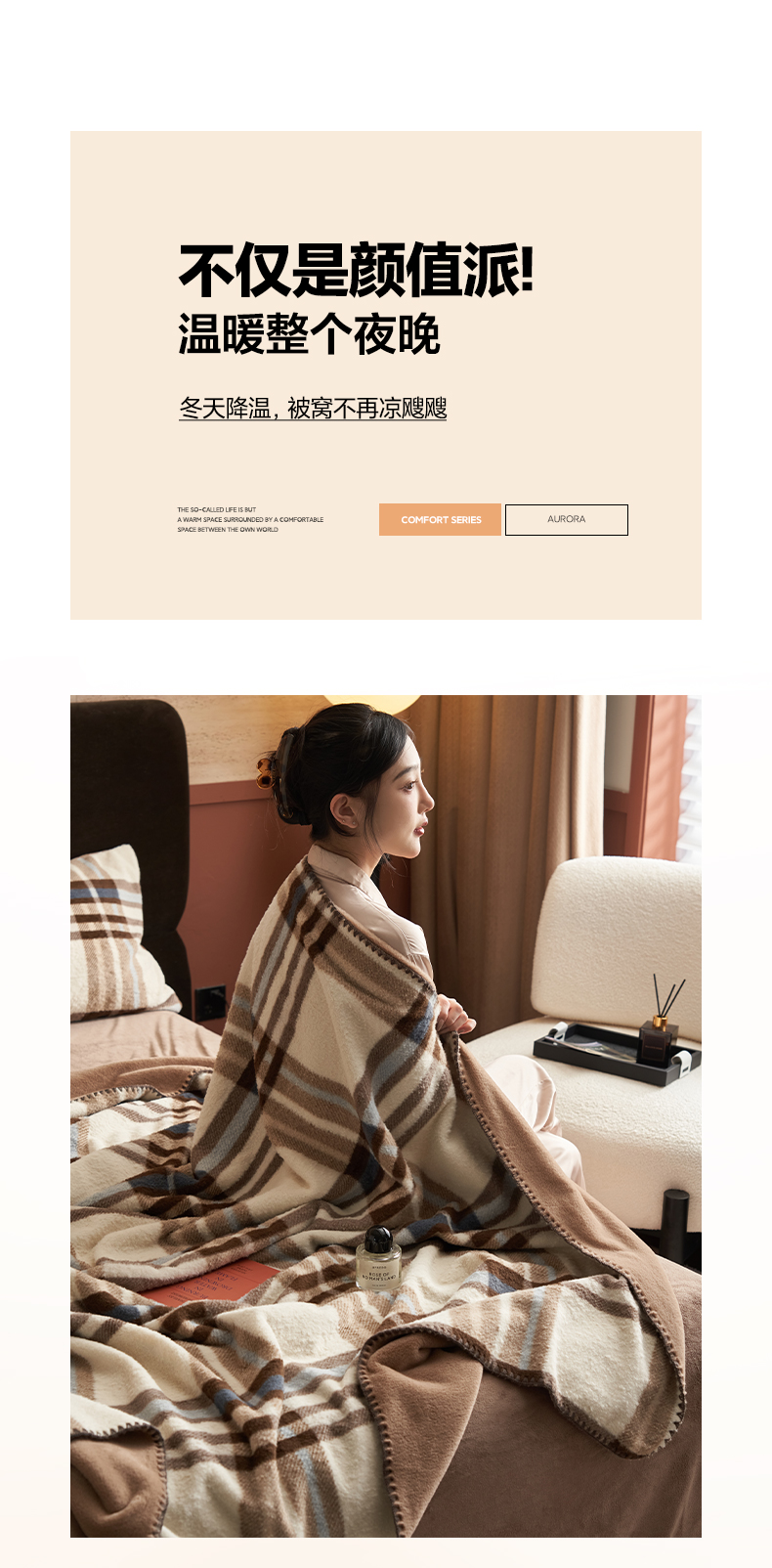 晨曦家纺 2025新款仿生羊毛绒毛毯沙发盖毯办公室午睡毯四季毯 组合图