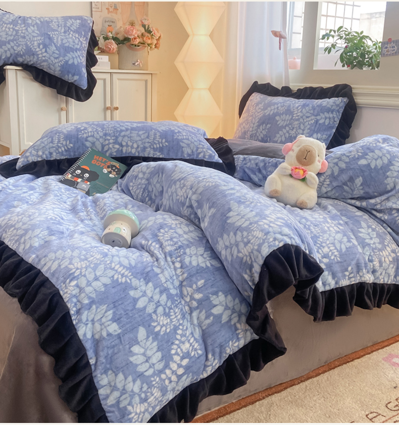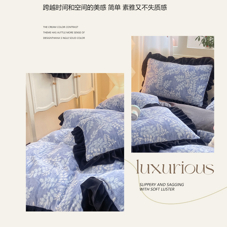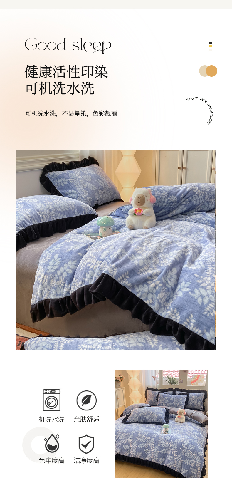 富之航家纺 2025新款小香风赫本风ins风大牌韩版大花边轻奢牛奶绒四件套 叶叙