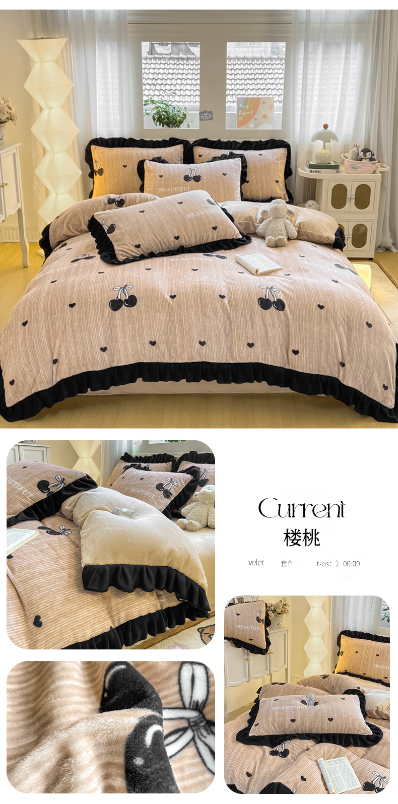 商品名称:富之航家纺 2025新款小香风赫本风ins风大牌韩版大花边轻奢牛奶绒四件套 叶叙