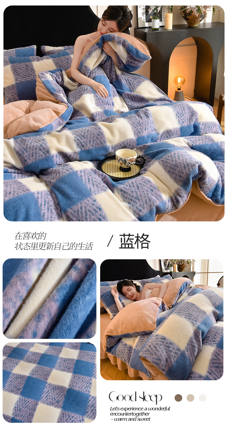 (总)同田家纺 2023新款兔毛绒兔兔绒獭兔绒牛奶绒四件套,格纹-棕,格纹-森,格纹-灰,格纹-白,格纹-粉,格纹-紫,格纹-绿