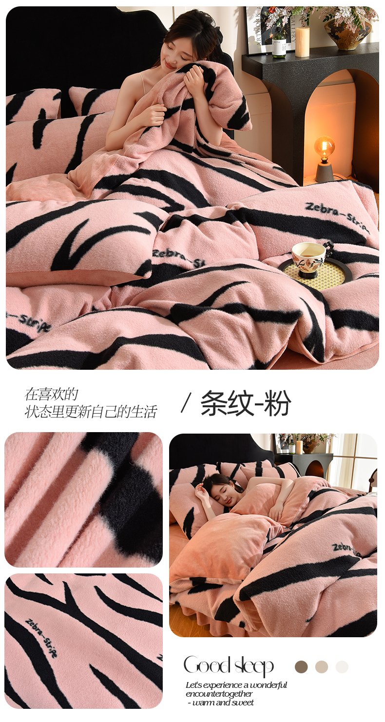 (总)同田家纺 2025新款A类羊羊绒牛奶绒印花四件套,熊猫,豹纹-粉,豹纹-咖,灰格,咖啡格,蓝格,条纹-白,条纹-粉,条纹-灰,条纹-咖,香蝶,伊莉莎-粉,伊莉莎-咖,紫蝶