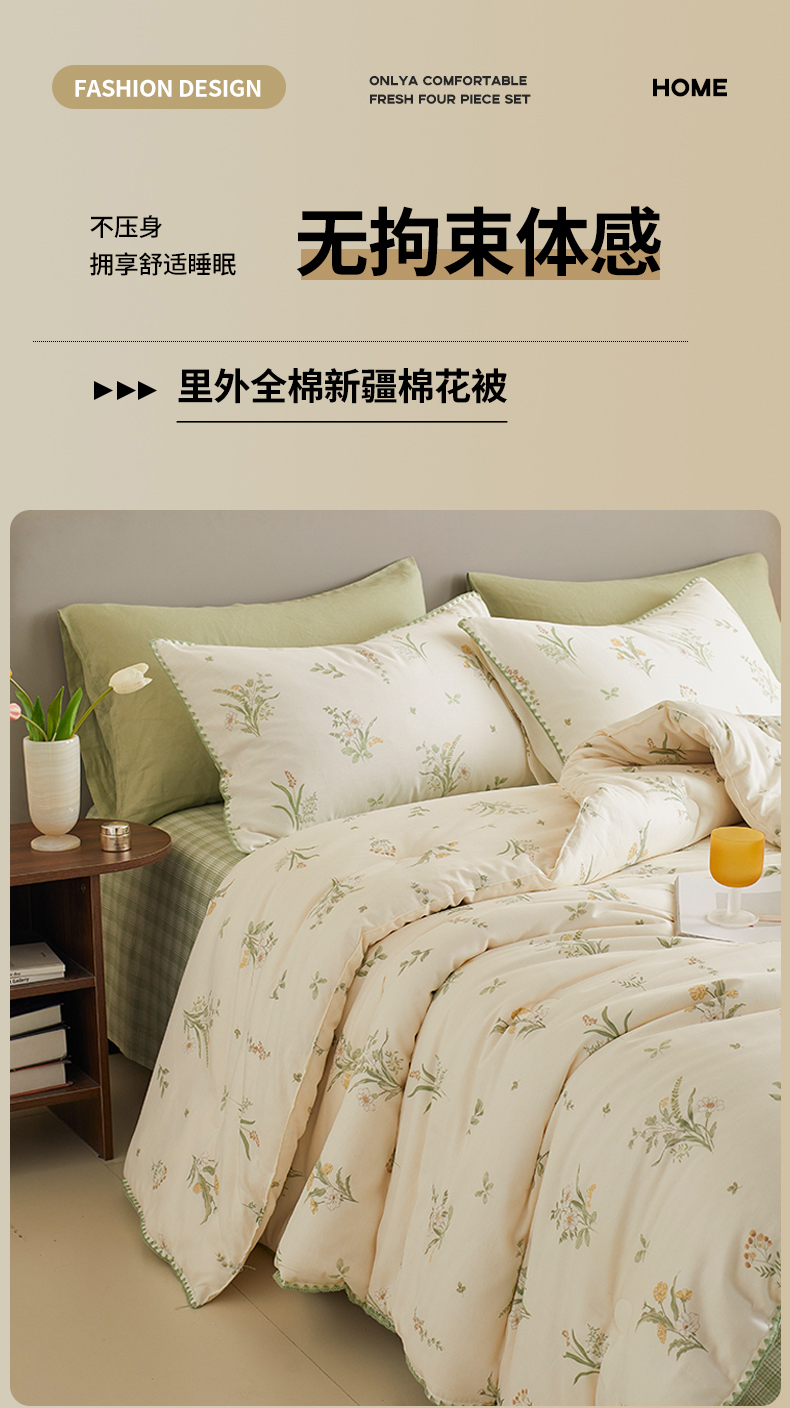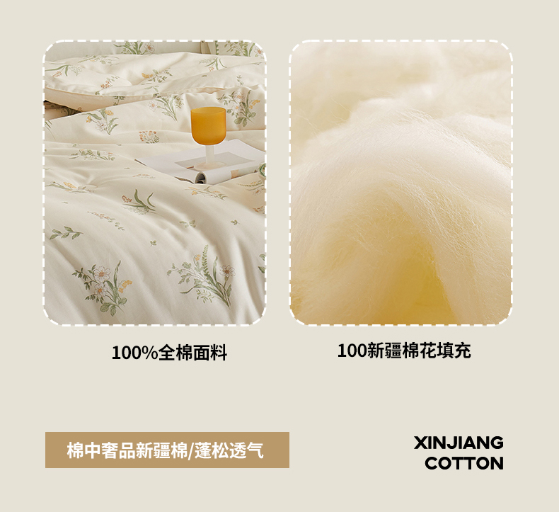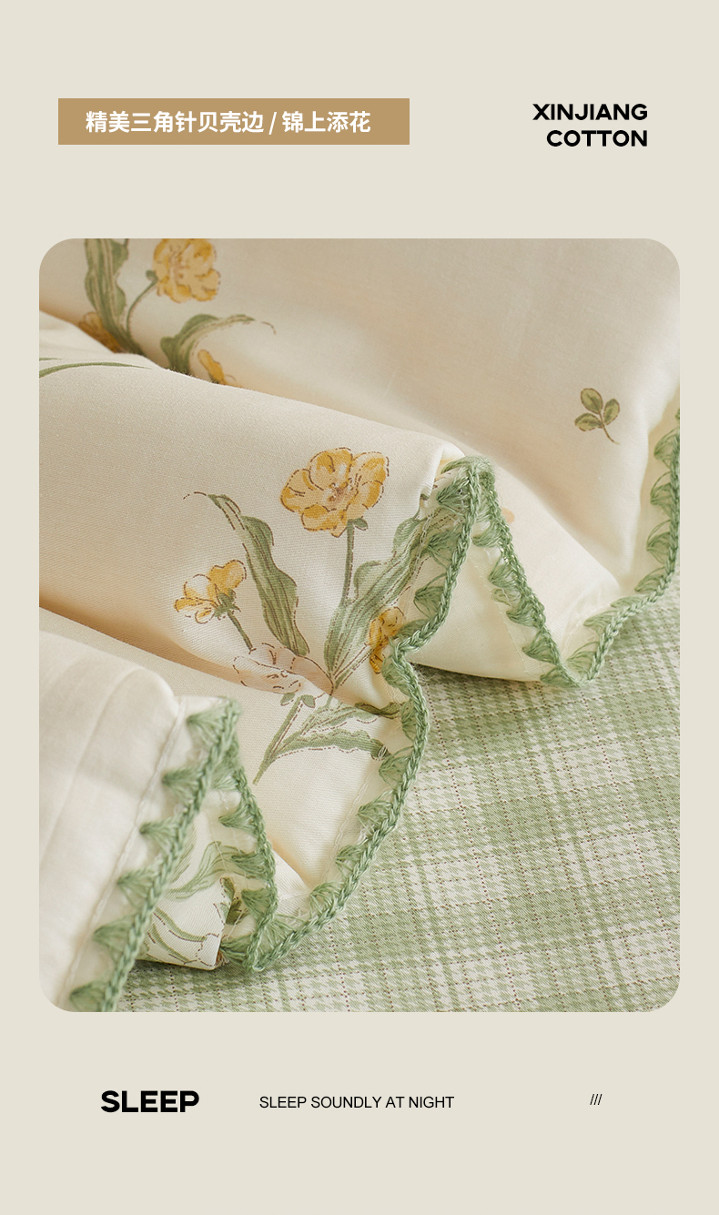 商品名称:暖阳 2025新款全棉A类里外贝壳三角针包边冬被被子被芯 花的温存