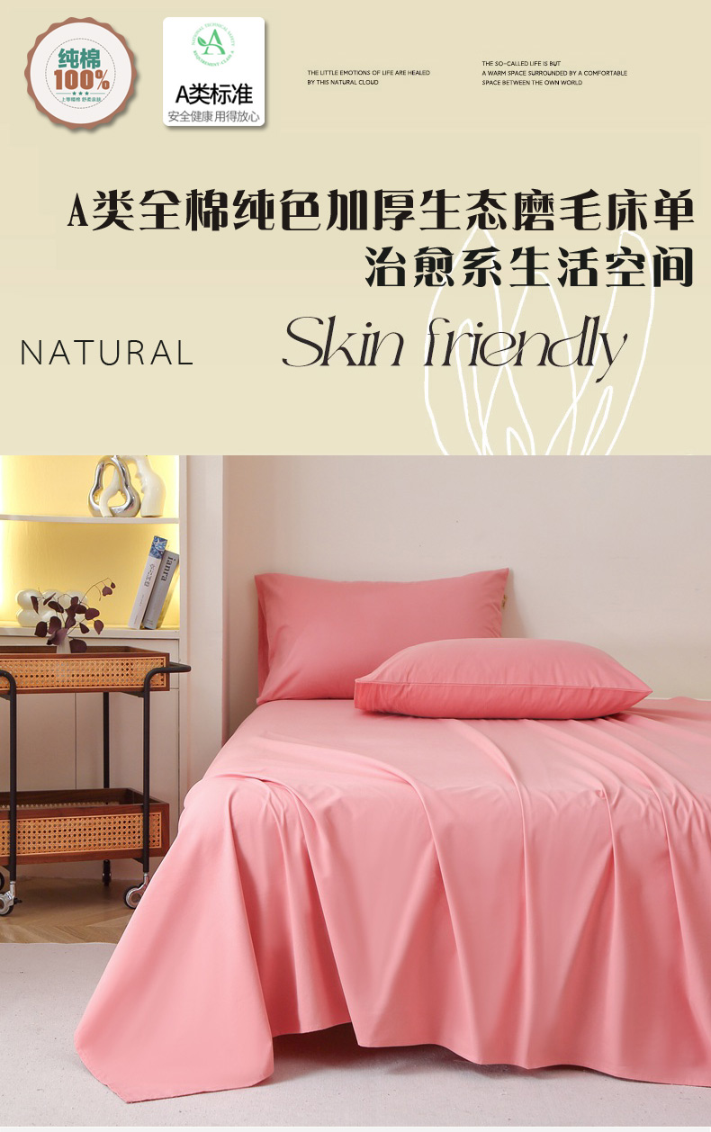 当前位置: 91家纺网 > 商品网购 > 跨境商品 > 床上用品(Bedding) > 床单床罩(Bedspreads Coverlets & Set > 晶缦家纺 2025新款100%纯棉13376纯色喷气全棉磨毛四件套和单品被套床单床笠枕套-单床单 暖芸馨-蕊红玉