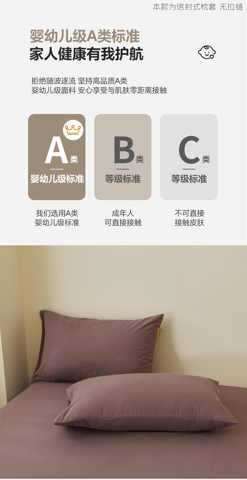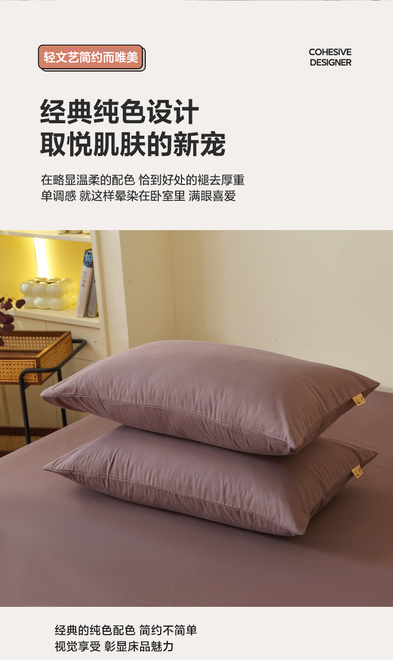 商品名称:晶缦家纺 2025新款100%纯棉13376纯色喷气全棉磨毛四件套和单品被套床单床笠枕套-单枕套 暖芸馨-深松棕
