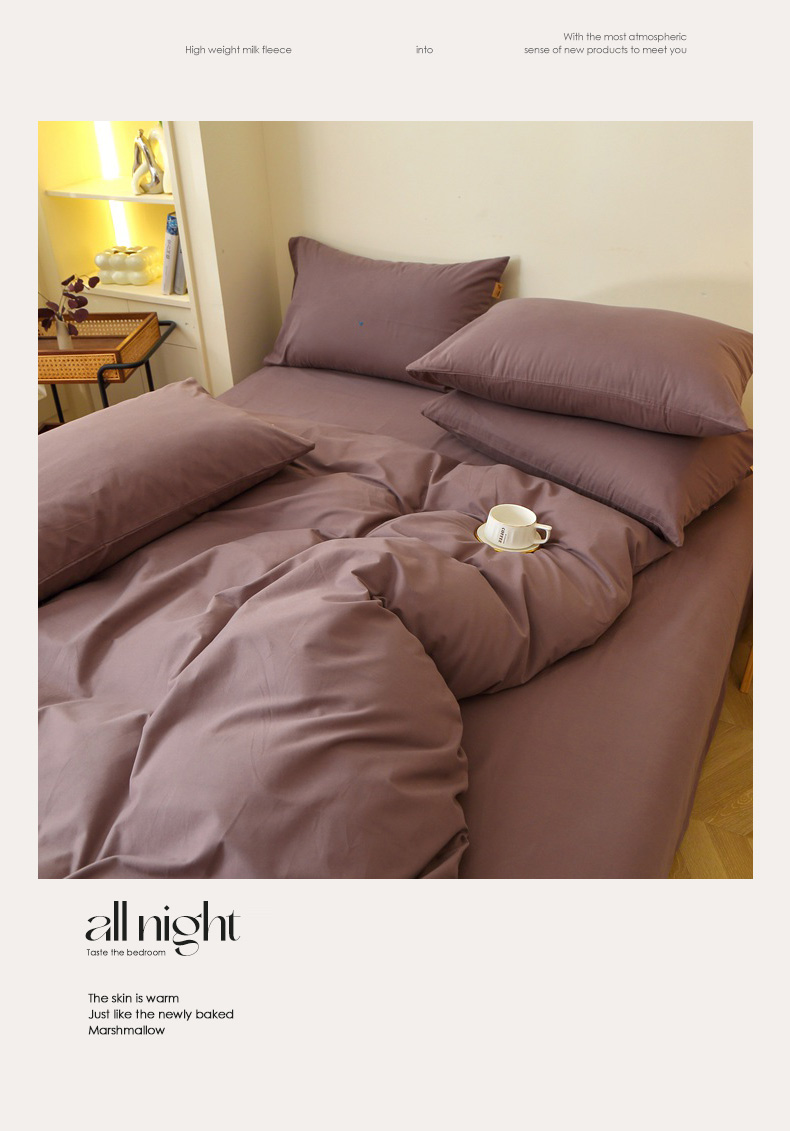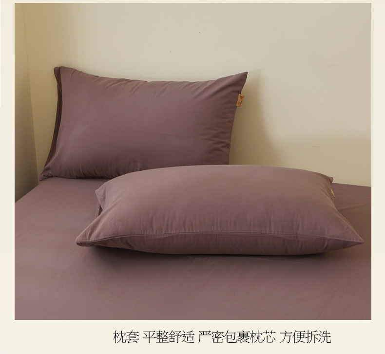 晶缦家纺 2025新款100%纯棉13376纯色喷气全棉磨毛四件套和单品被套床单床笠枕套-单枕套 暖芸馨-深松棕
