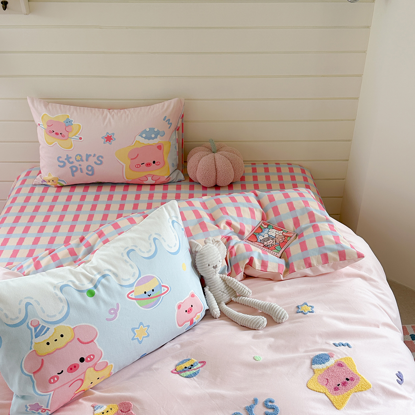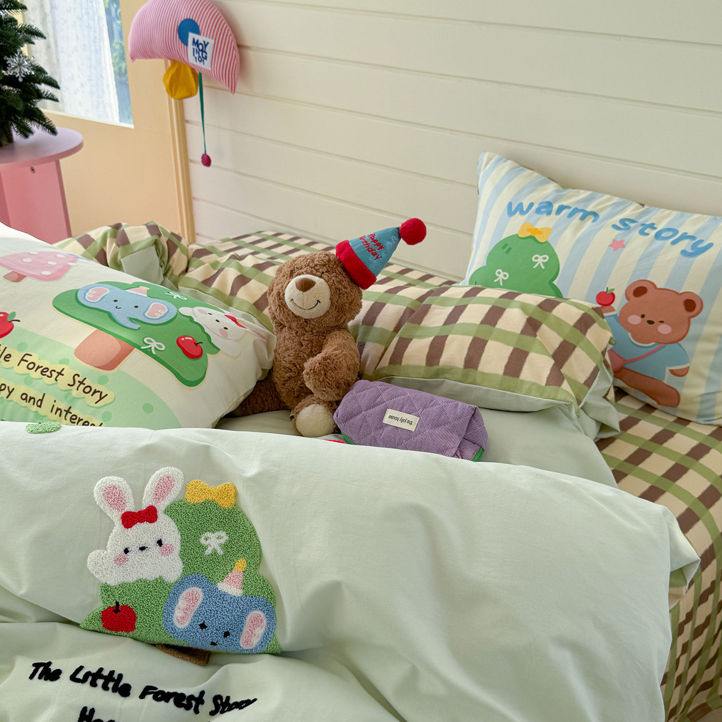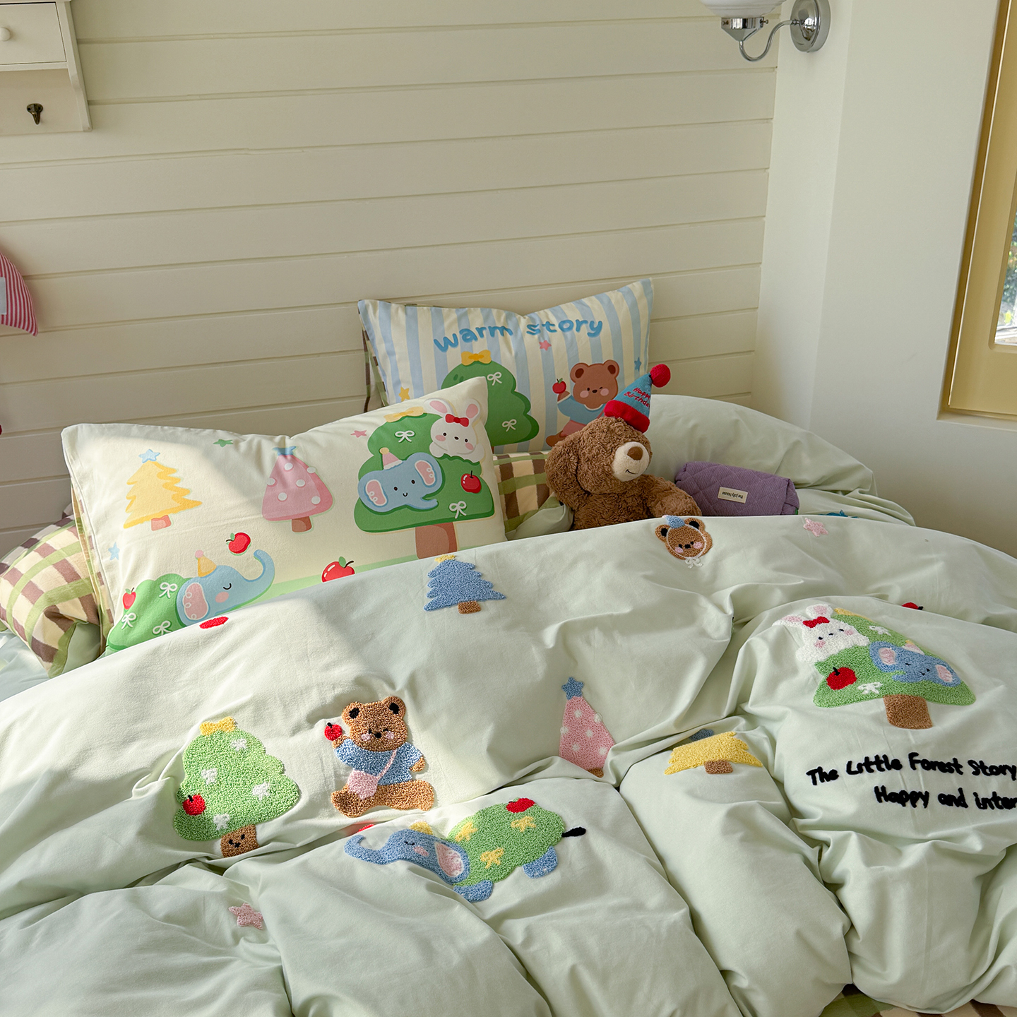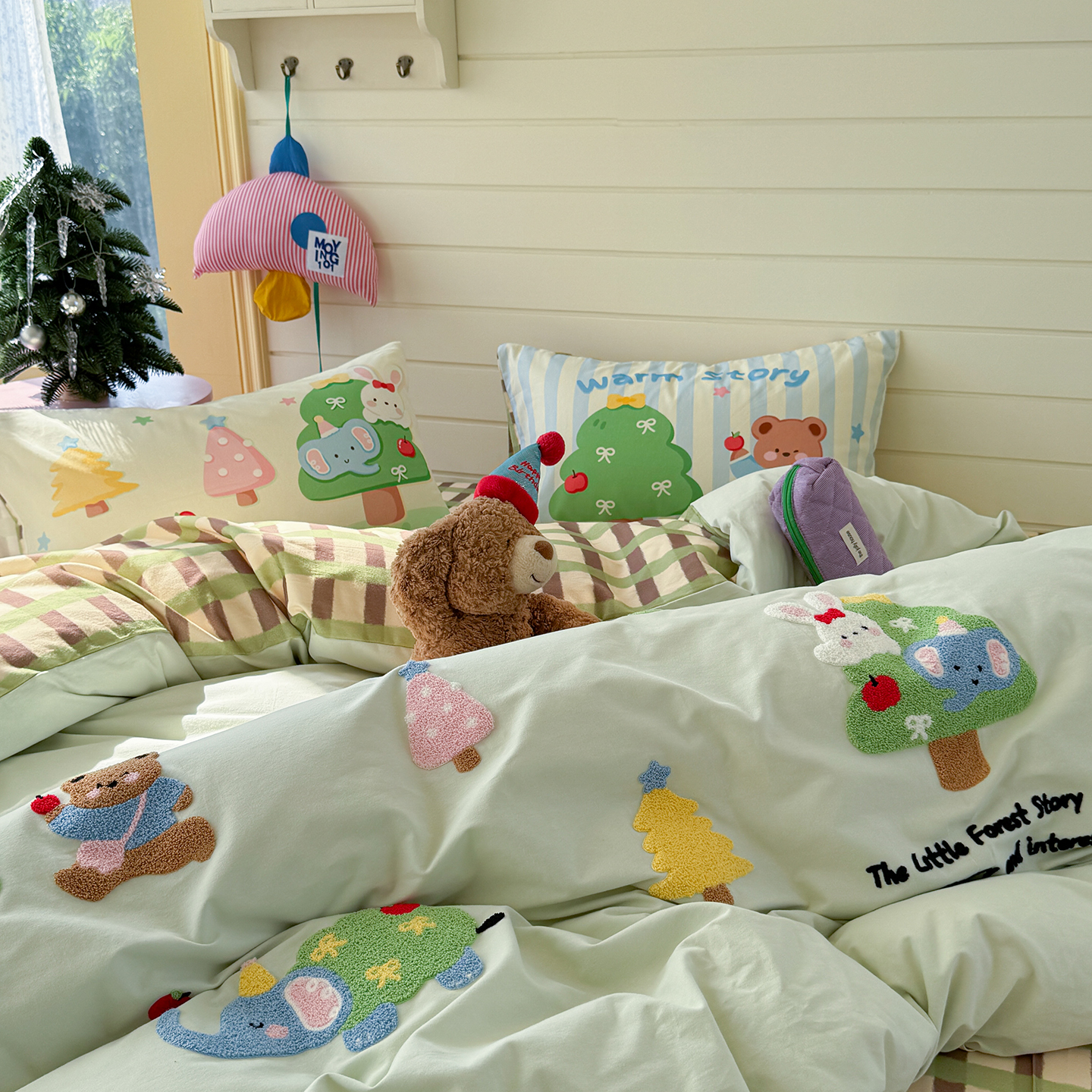 (总)柚子YOUTH 2025新款全棉纯棉工艺款13070贴布绣四件套,爱心小象,毛绒小狗,蘑菇女孩,星星法师