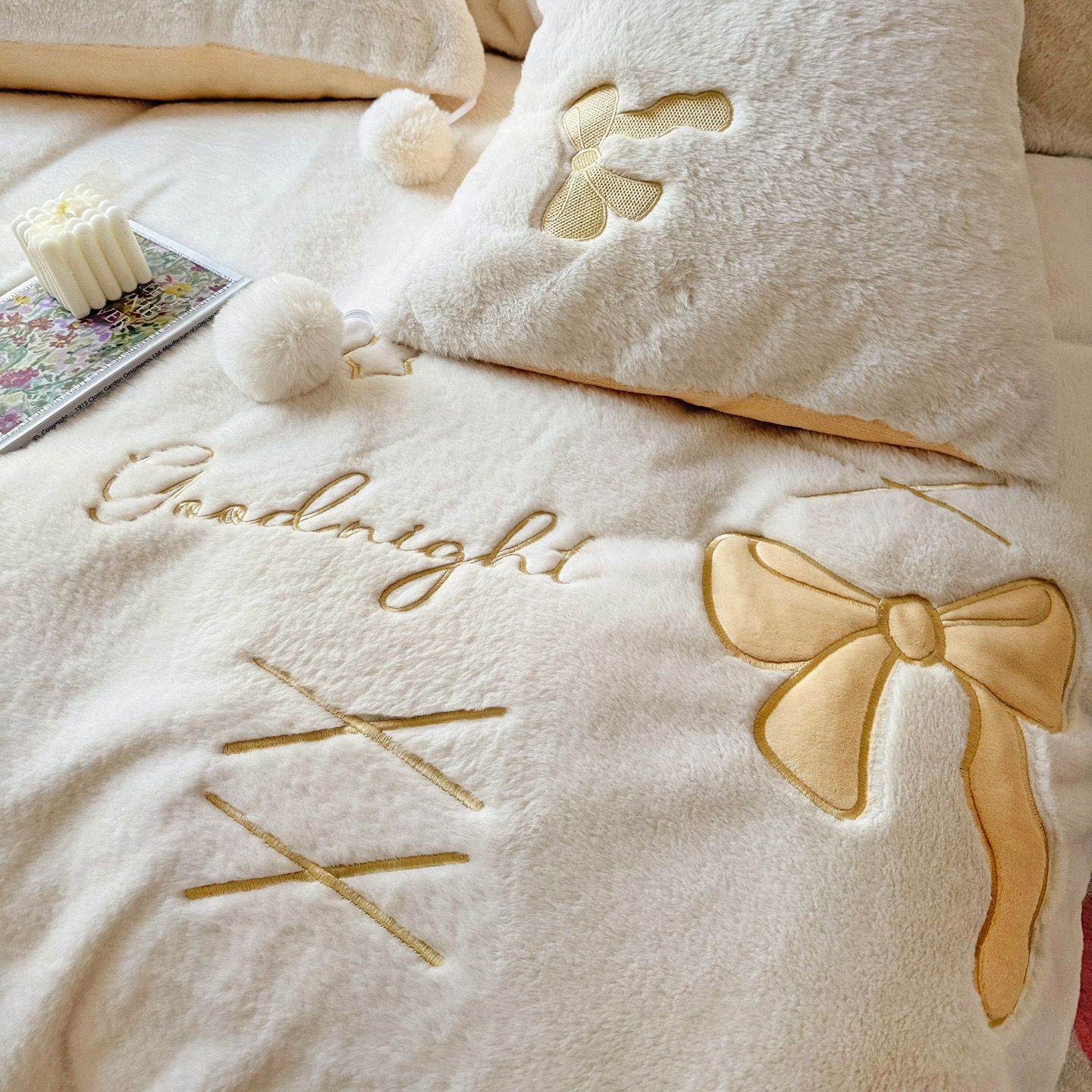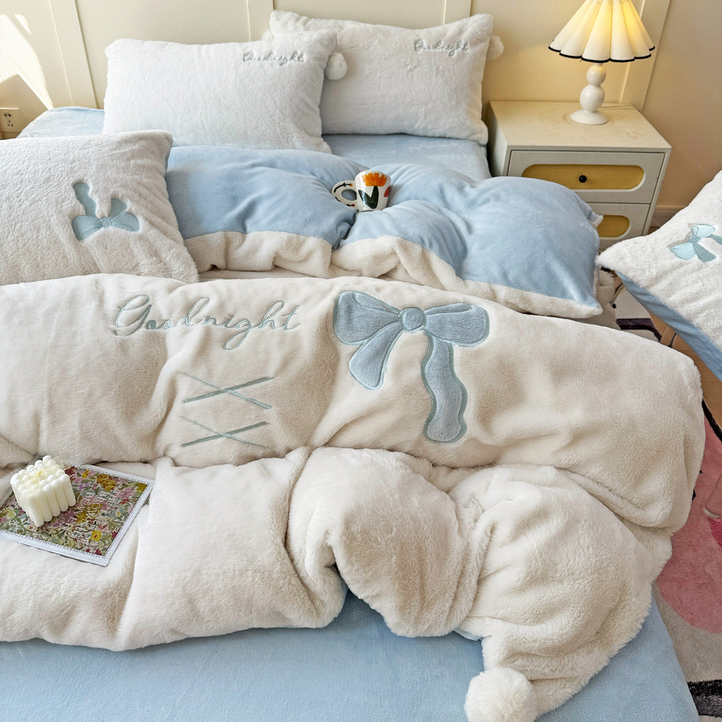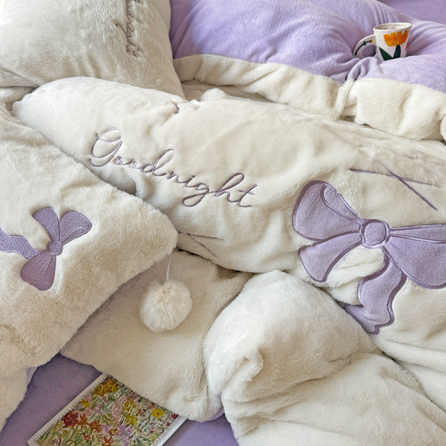 当前位置: 91家纺网 > 商品网购 > 床品套件 > 四件套 > 其它四件套 > 麦朵家居 2025新款毛球高克重兔毛贴布绣牛奶绒四件套高克重宝宝绒床裙款四件套 兔毛-领结紫