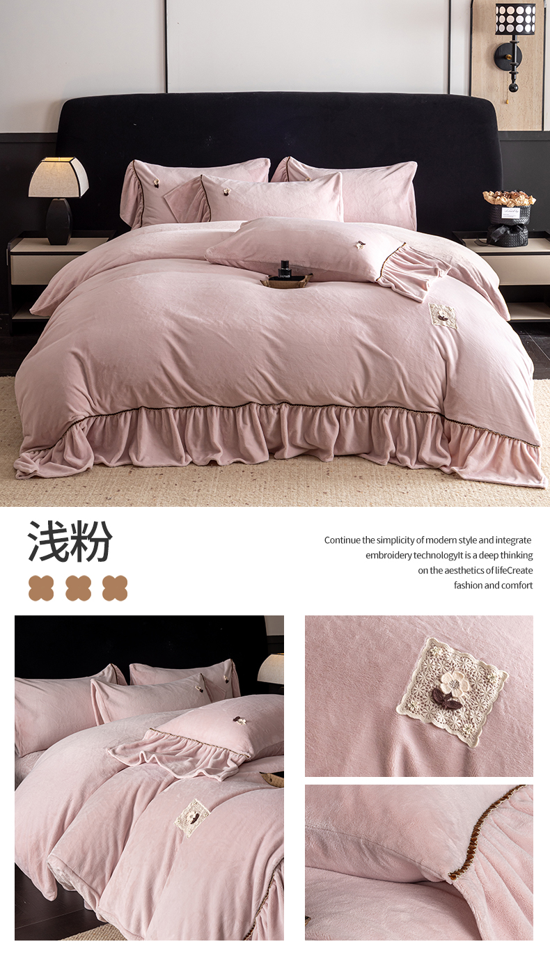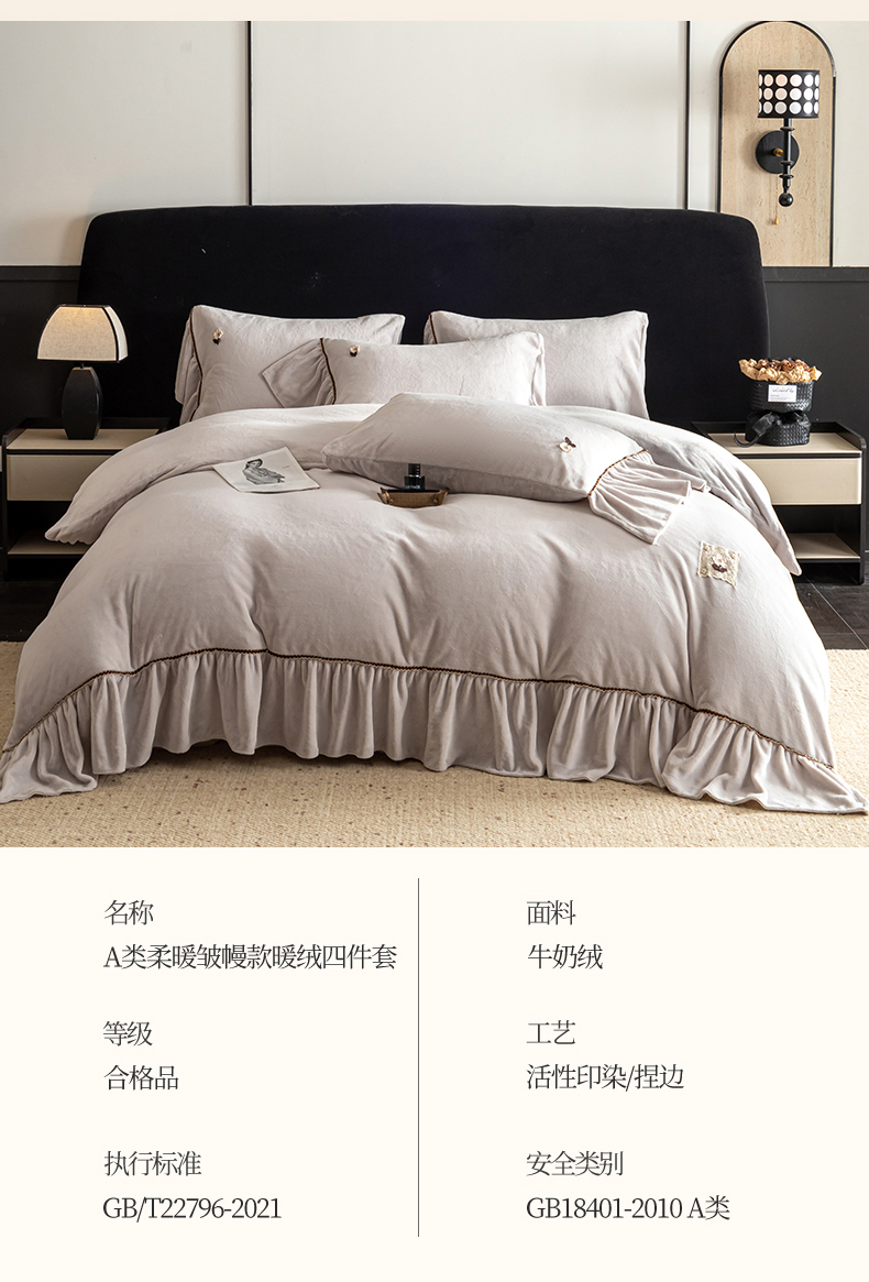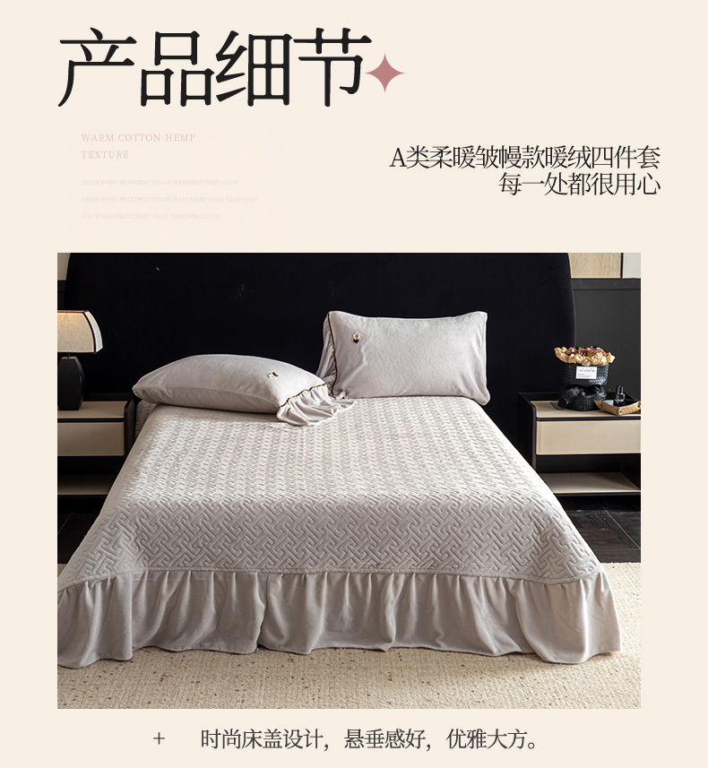 (总)罗优家纺 2025新款柔暖皱幔款暖绒四件套,浅粉,浅灰,浅蓝,浅杏
