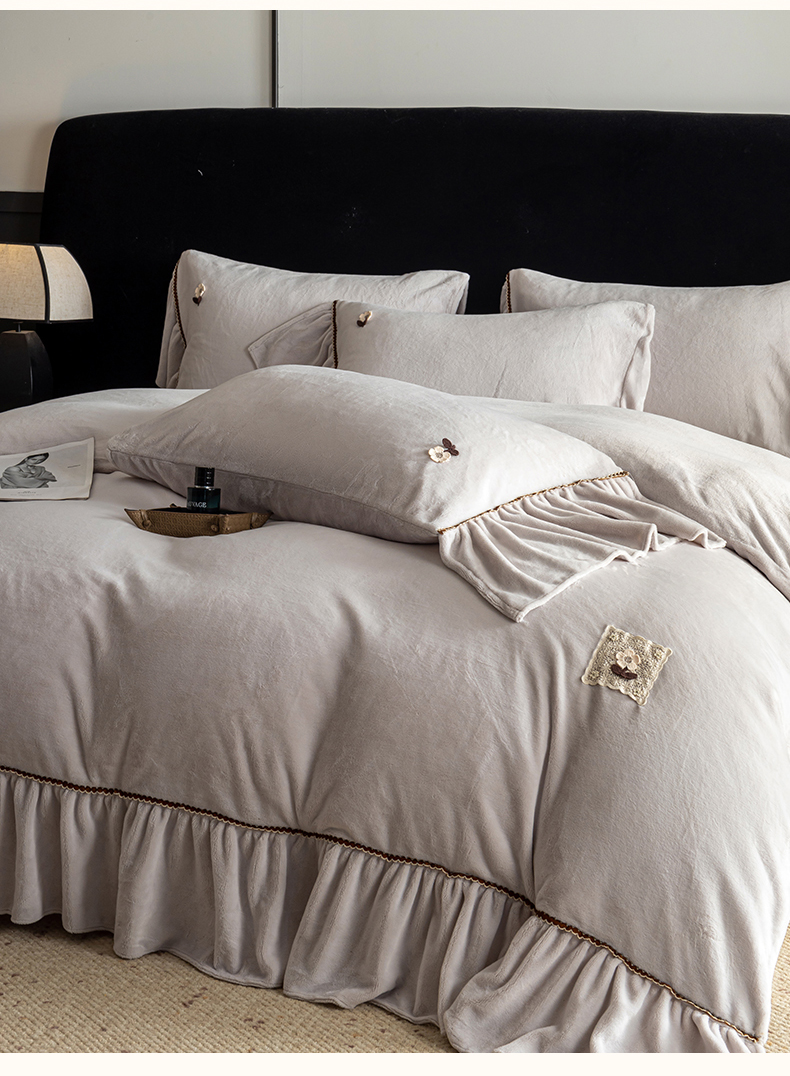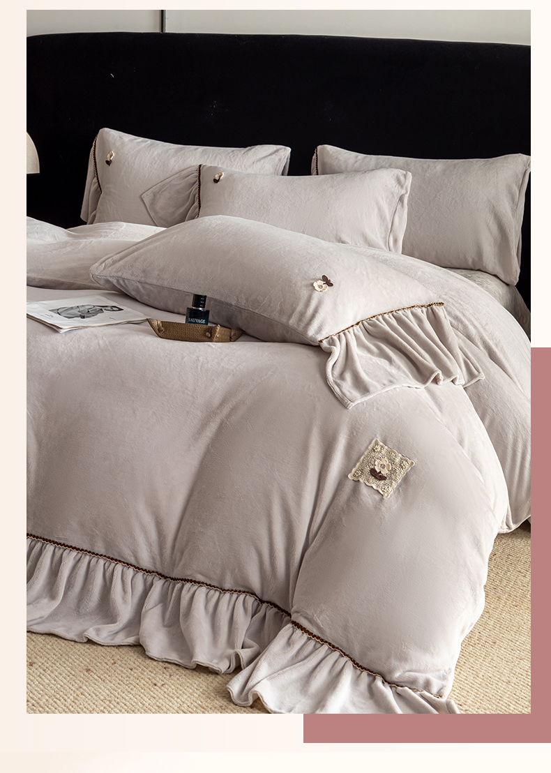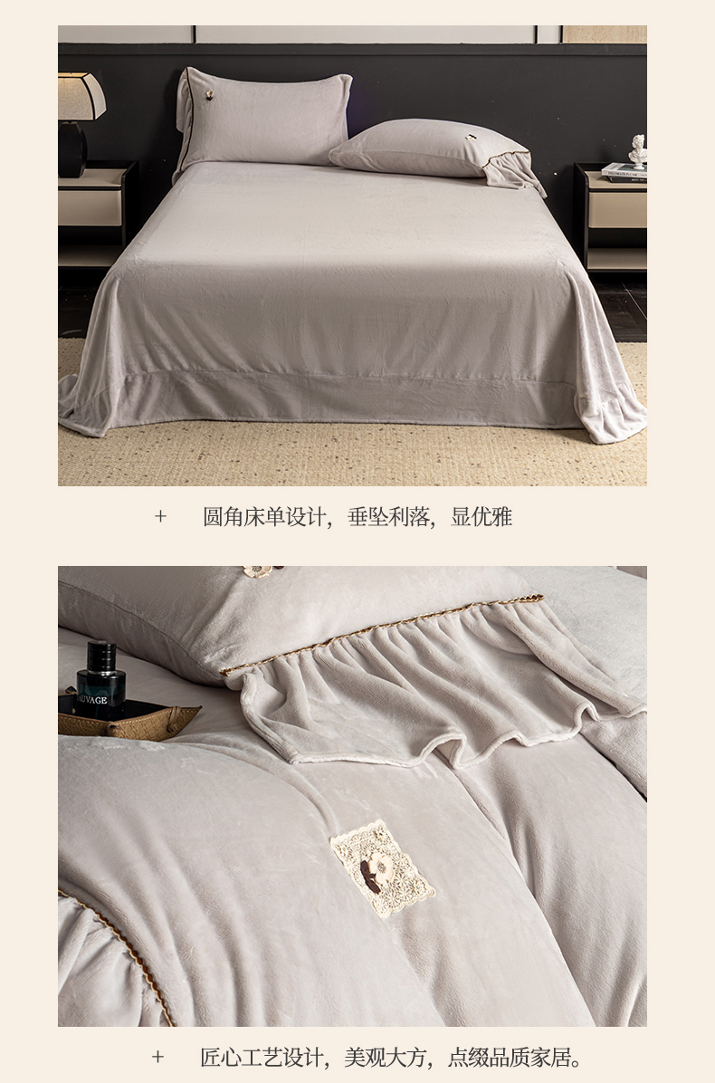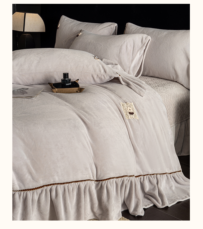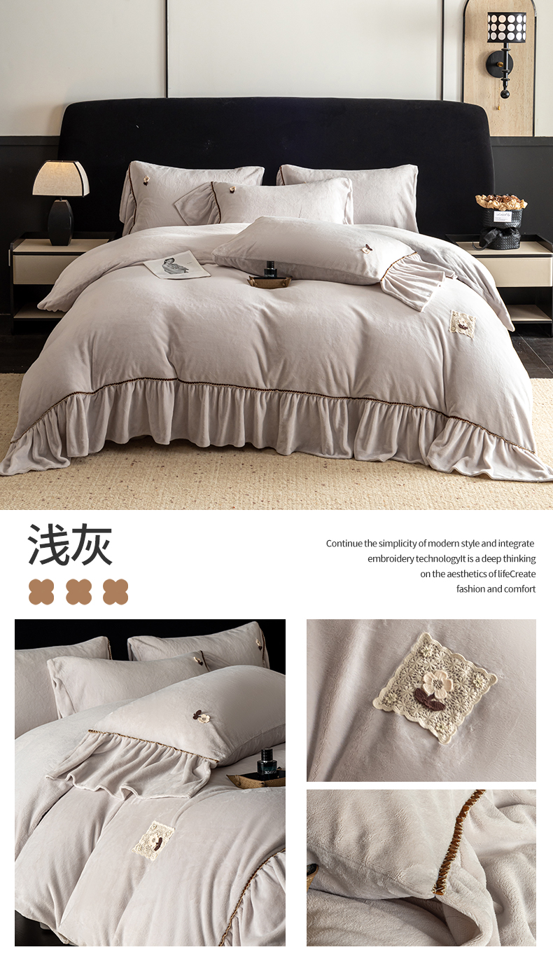 罗优家纺 2025新款柔暖皱幔款暖绒四件套 浅灰