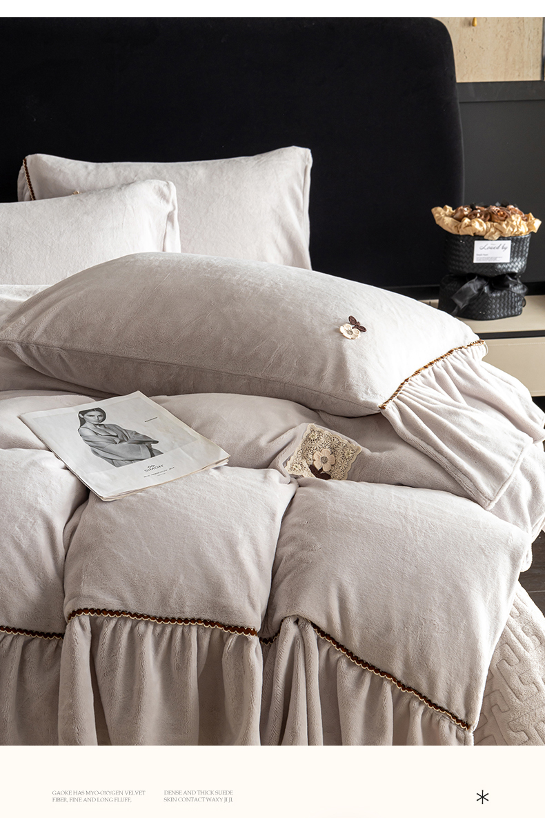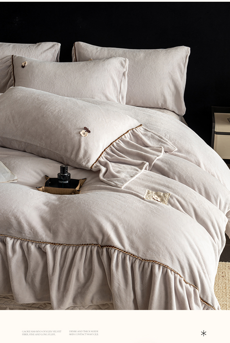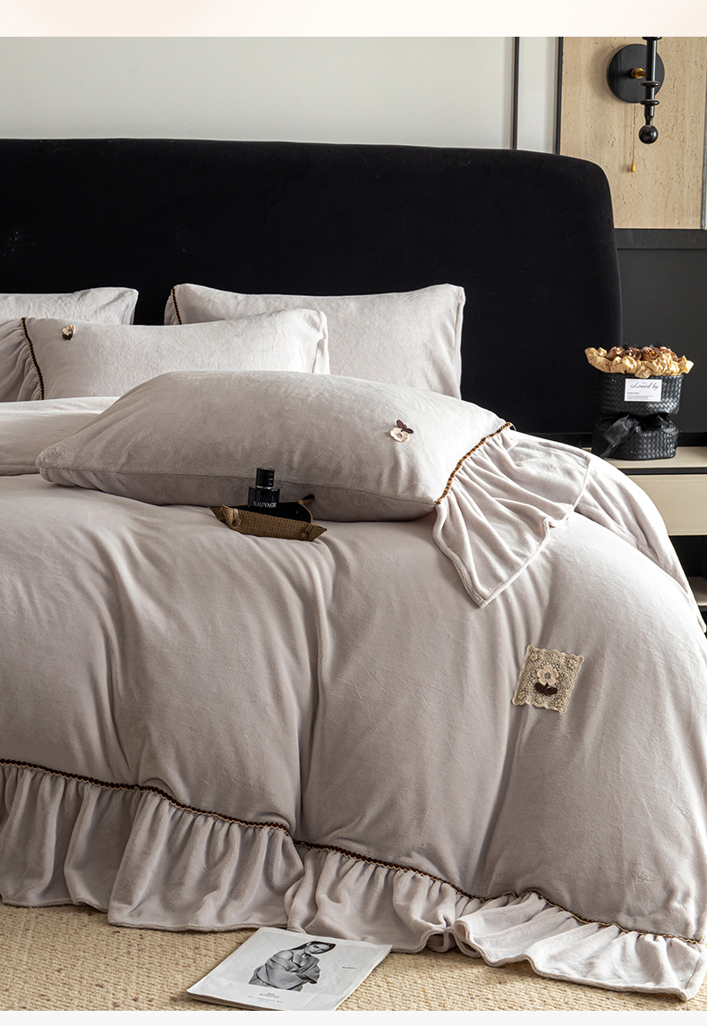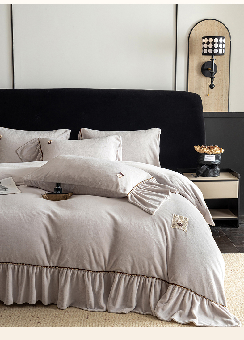 罗优家纺 2025新款柔暖皱幔款暖绒四件套 浅灰