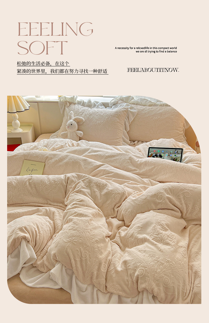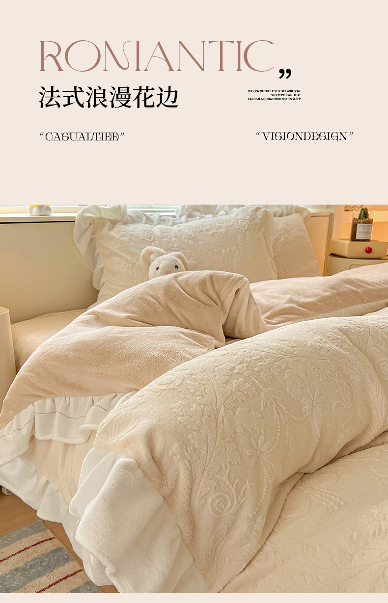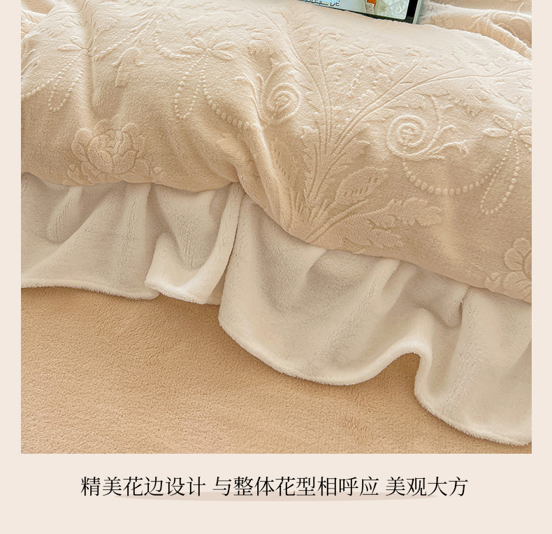 当前位置: 91家纺网 > 商品网购 > 床品套件 > 四件套 > 牛奶绒四件套 > 亿梵家居 2025新款法式花边款A类5D牛奶绒立体雕花四件套(提供买家秀) 花边款-郁金香-奶油白