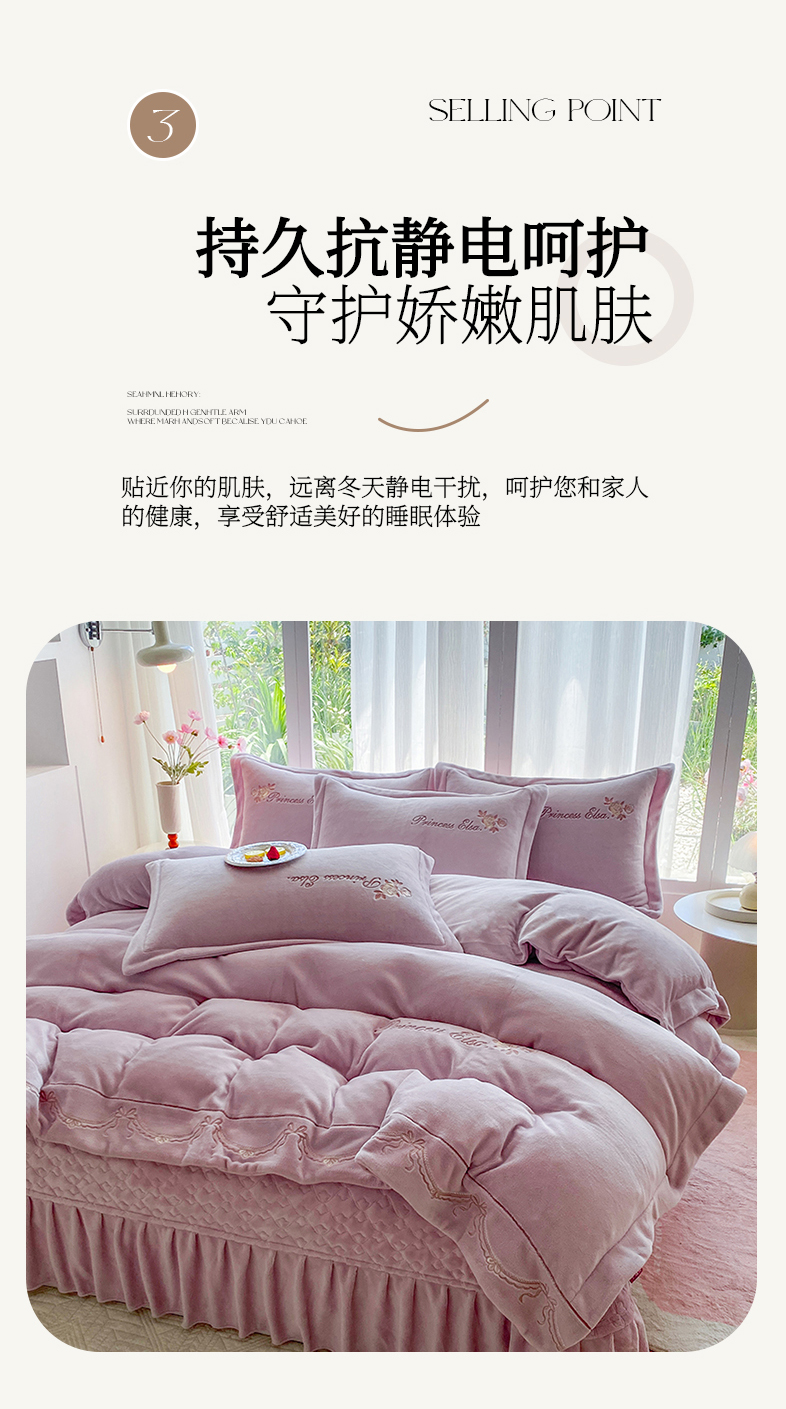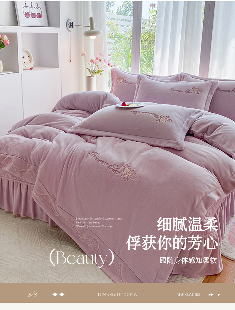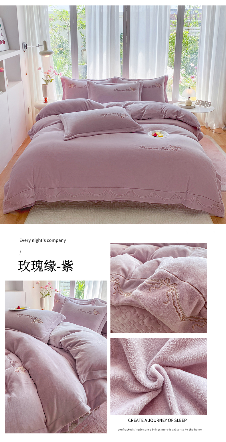 当前位置: 91家纺网 > 商品网购 > 床品套件 > 四件套 > 牛奶绒四件套 > 乐嘉盈 2025年新款纯色刺绣牛奶绒四件套-玫瑰缘 玫瑰缘-紫