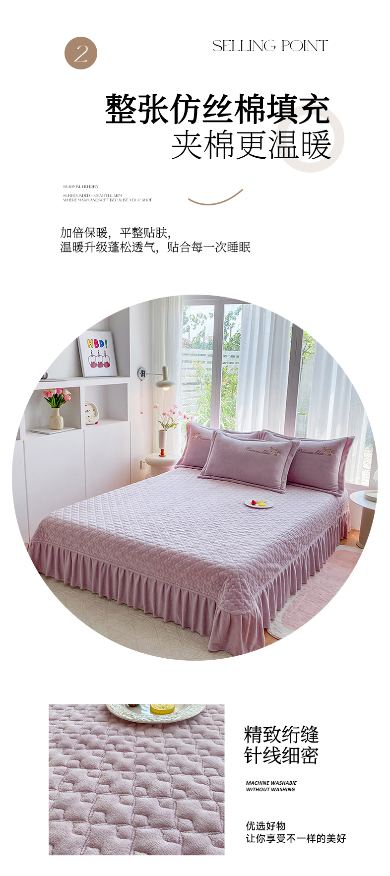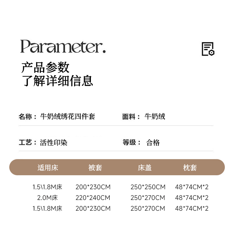 床盖四件套:被套200*230cm,床盖250*250cm,枕套48*74cm | ¥270.00 |