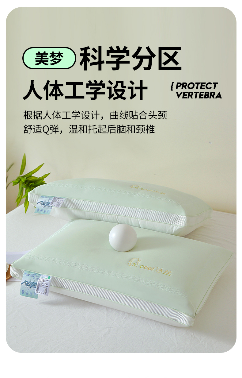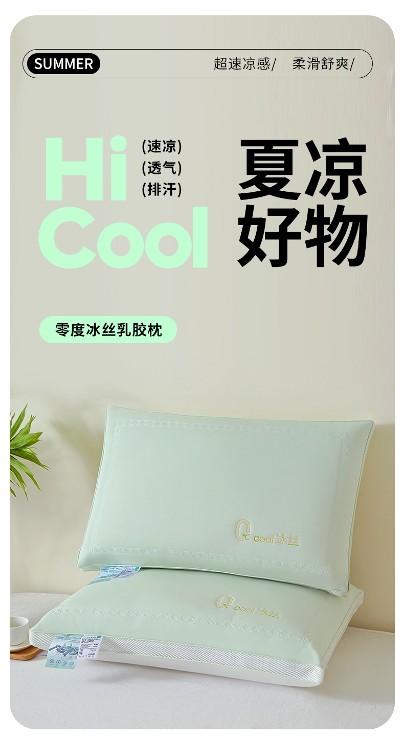 十仟家纺 2025新款亲肤柔软凉感冰丝枕零度冰丝乳胶枕 零度冰丝乳胶枕-玉色