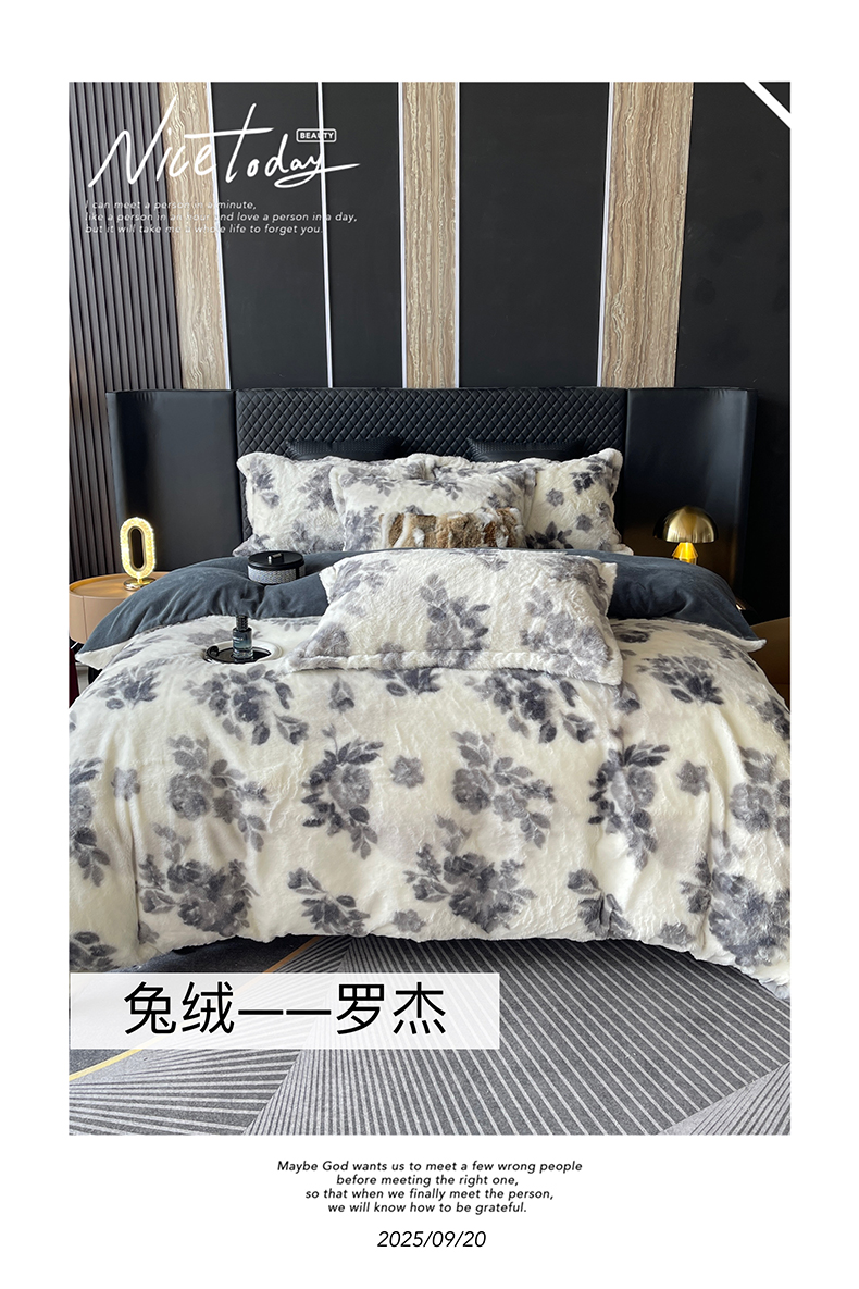 商品名称:莱豫家纺 2025新款秋冬加厚皮草级兔绒加牛奶绒四件套 圆点灰