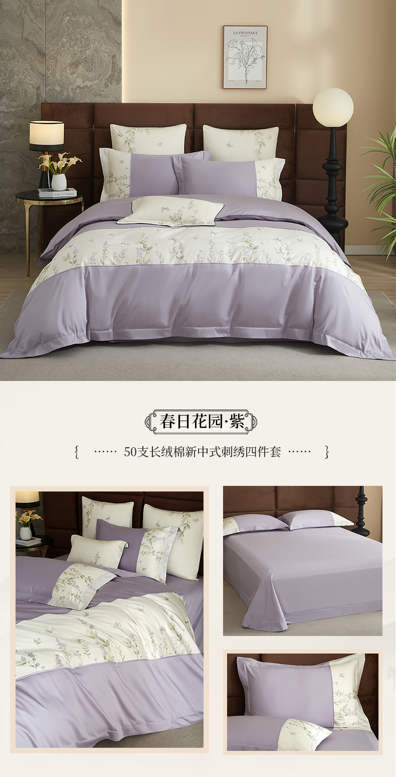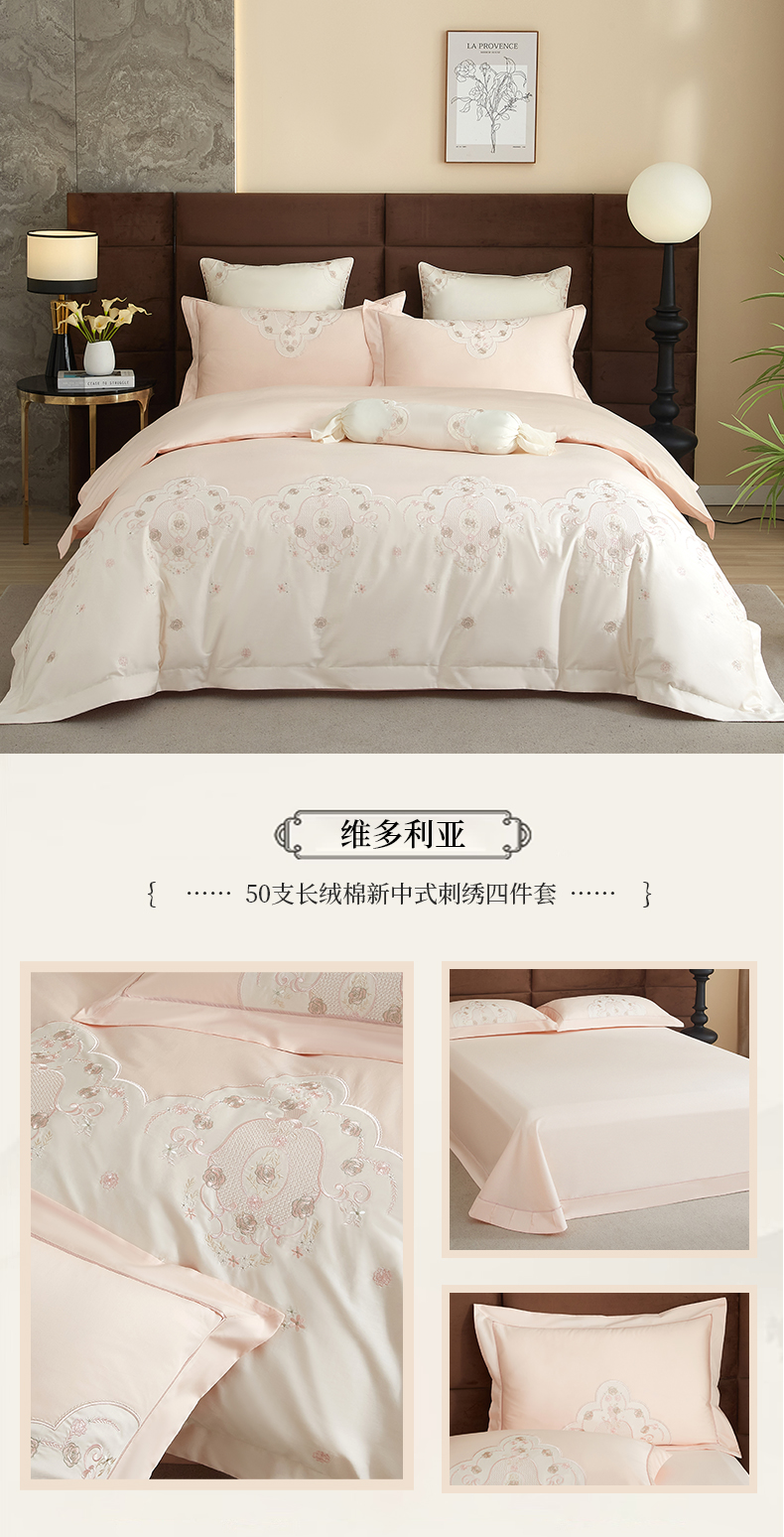 (总)50支50S长绒棉刺绣四件套新中式工艺款,荷塘月色粉 控价478-498元,荷塘月色玉 控价478-498元,翩翩起舞 控价478-498元,温馨满园粉玉 控价478-498元,温馨满园芋紫 控价478-498元,玉露清华 控价478-498元