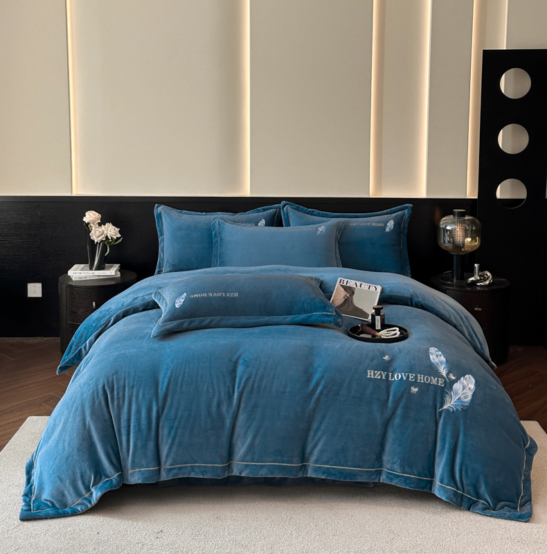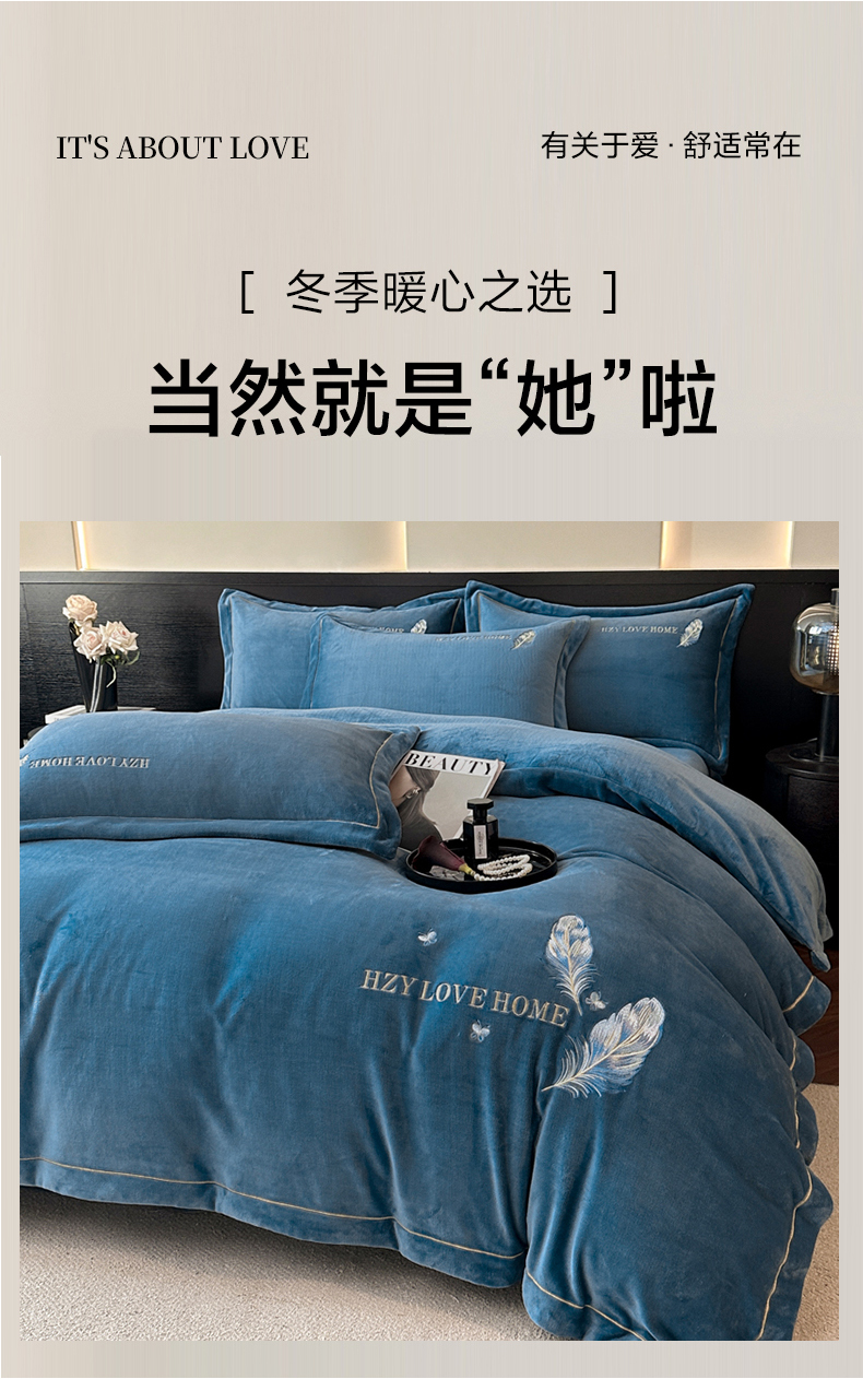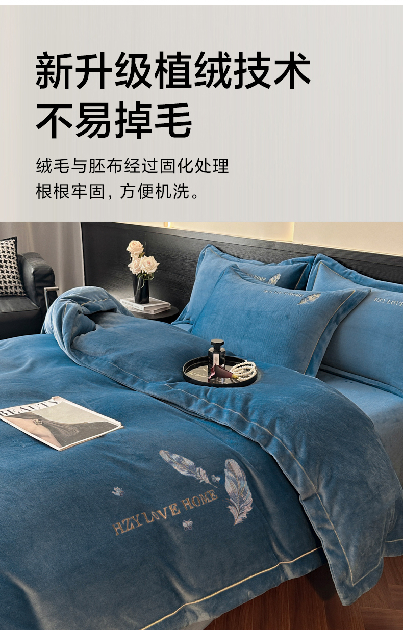 (总)鸿织源家纺 2025新款230g全消光牛奶绒刺绣四件套,宾利蓝,伯爵玉,罗兰灰,奶昔白,赛琳绿,相思咖,豆沙,摩卡棕