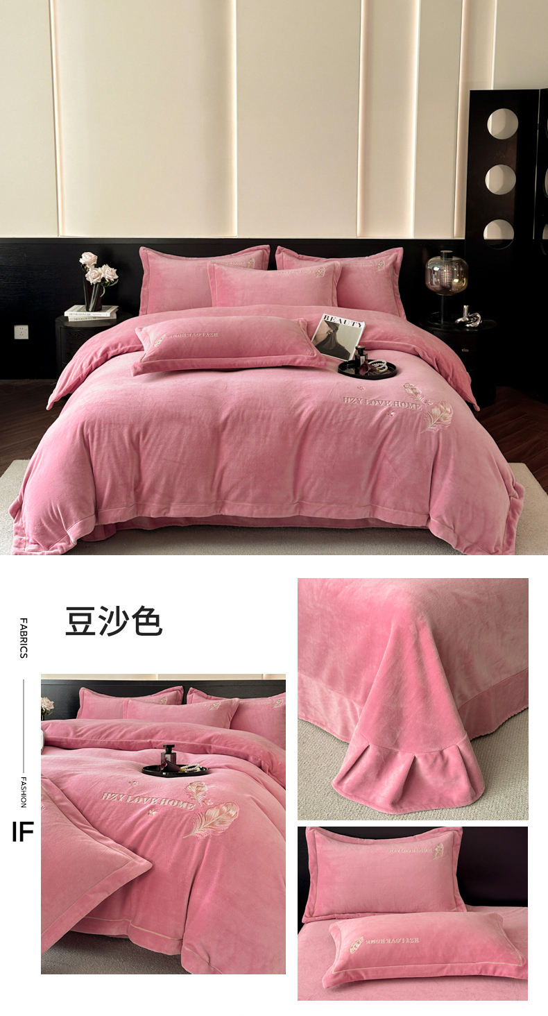 鸿织源家纺 2025新款230g全消光牛奶绒刺绣四件套 豆沙,豆沙