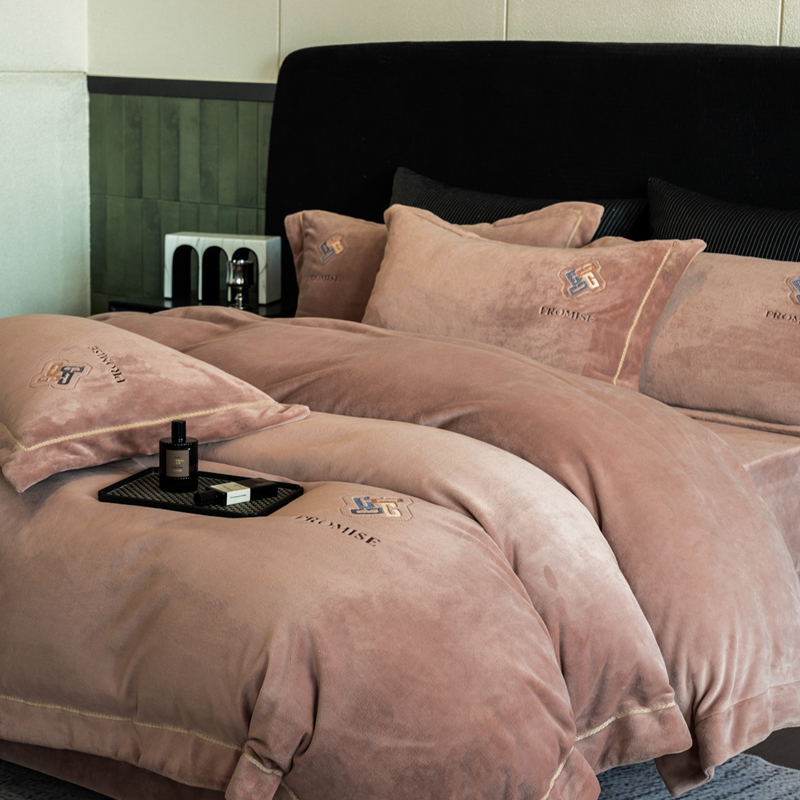 (总)时亿 2023新款加厚保暖獭兔绒四件套,抹茶绿,肉肉粉