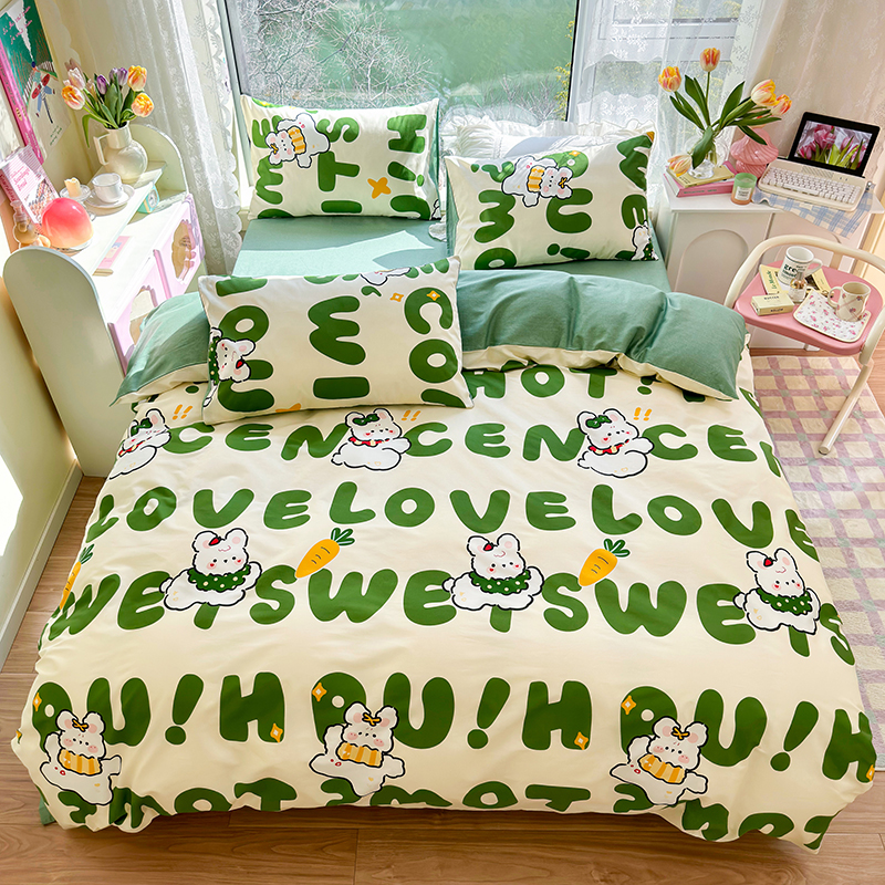 (总)琪格格纺织 2025新款全棉纯棉13372小清新四件套,爱心兔,白兔与熊,彩霞,美郁-紫,萌心兔,皮皮兔,苏珊花园,微雨,小粉兔,熊猫