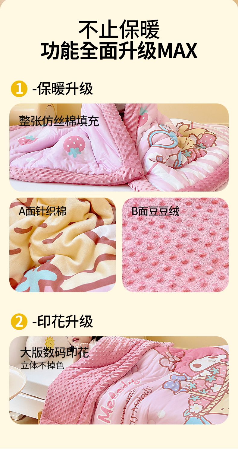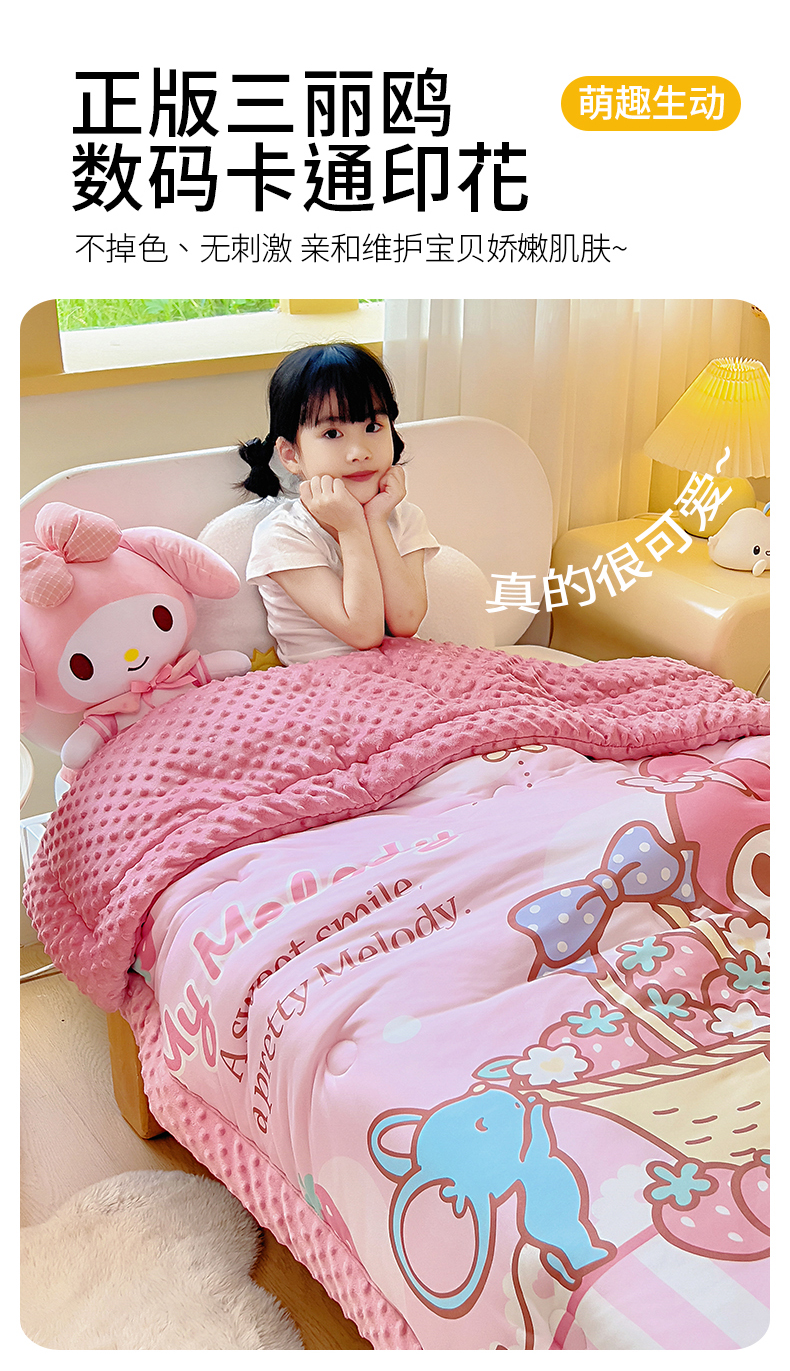 (总)吉咪兔家纺 2025新款大版三丽鸥库洛米儿童豆豆被针织棉幼儿园宝宝午睡春秋四季婴儿被子被芯,草莓美乐蒂,蛋糕库洛米,汉堡玉桂狗,花花美乐蒂,奶茶美乐蒂,气球库洛米,梳妆库洛米,云朵玉桂狗