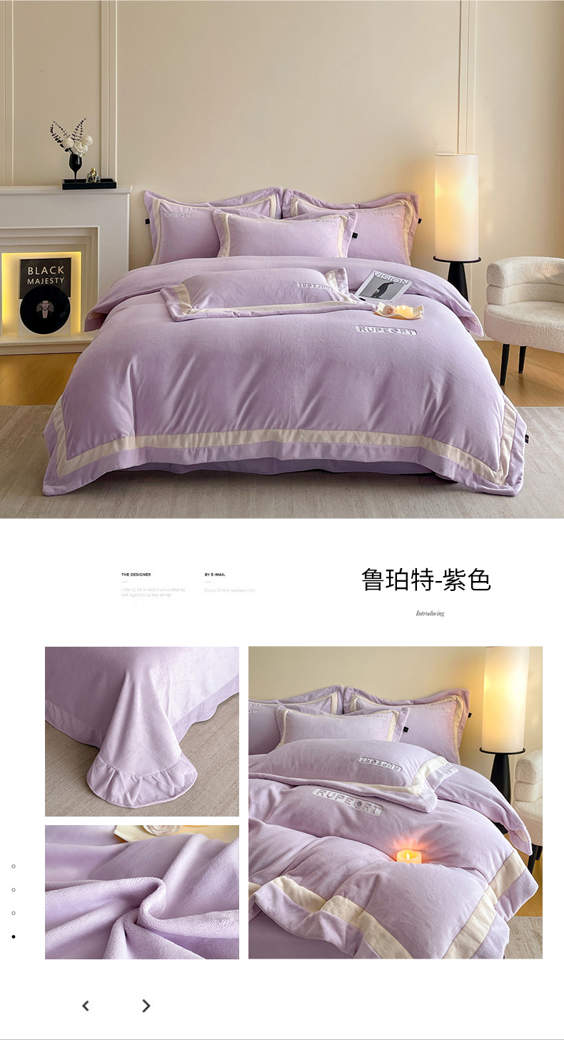 商品名称:雅萱家纺 2025新款300g全消光牛奶绒四件套 鲁珀特-紫色