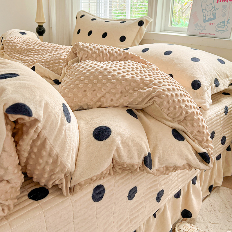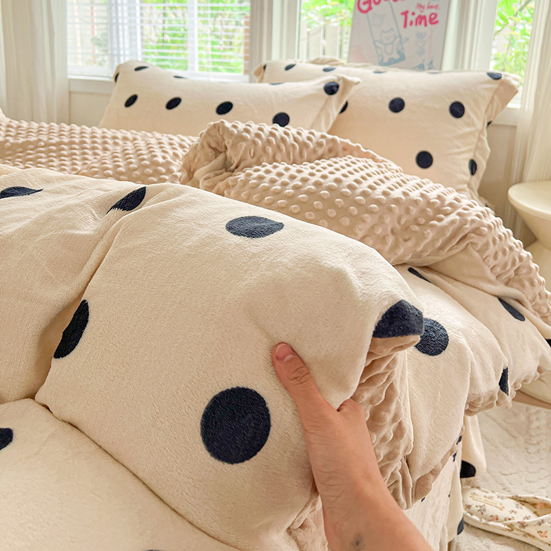 当前位置: 91家纺网 > 商品网购 > 床品套件 > 四件套 > 牛奶绒四件套 > 一比一 2025新款加厚保暖豆豆牛奶绒床盖款四件套奶茶啵啵