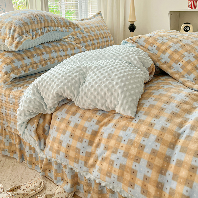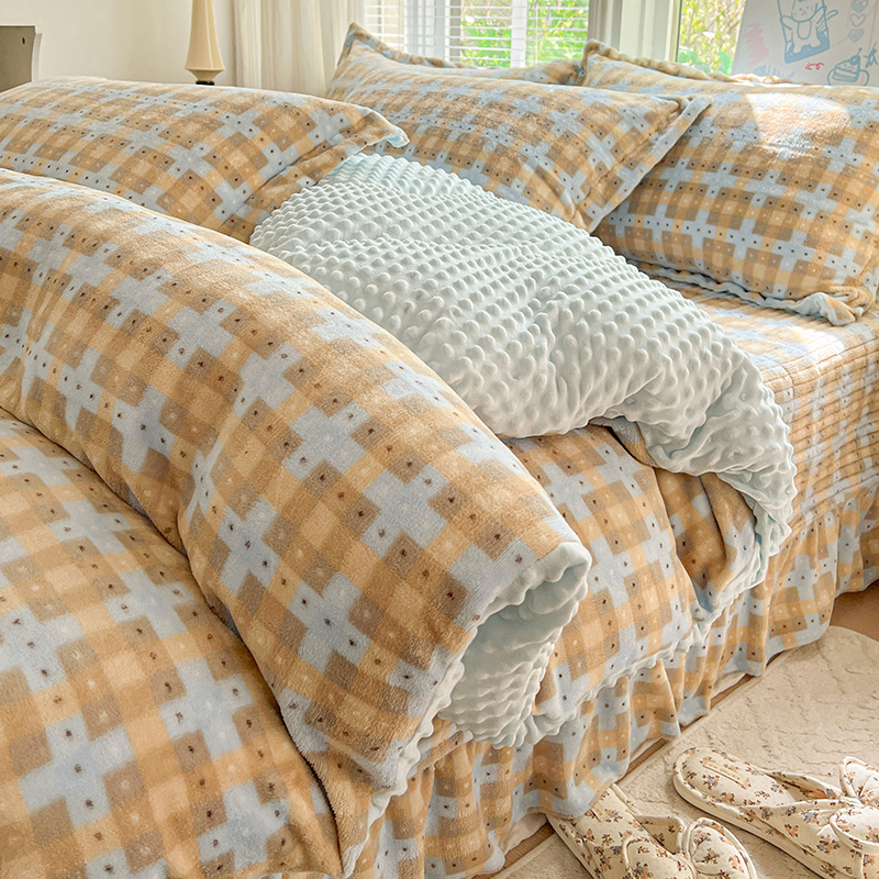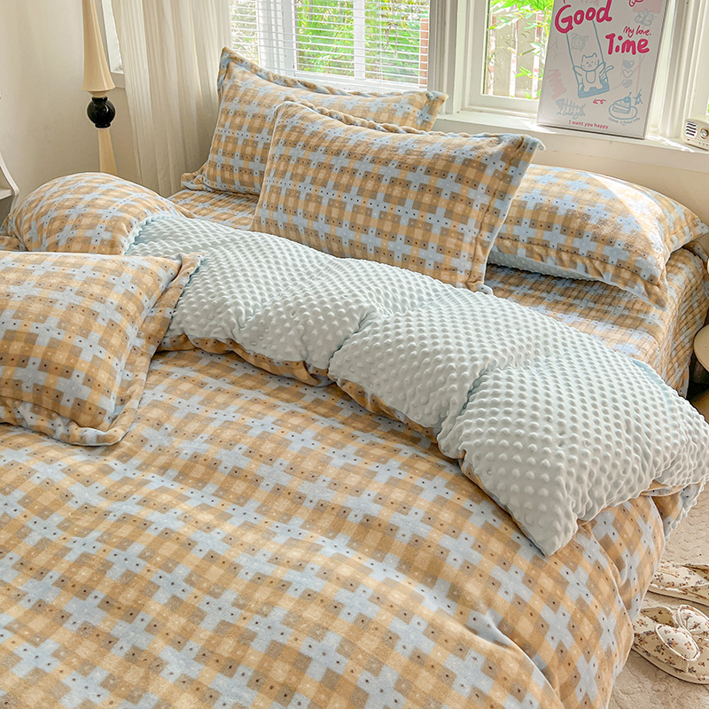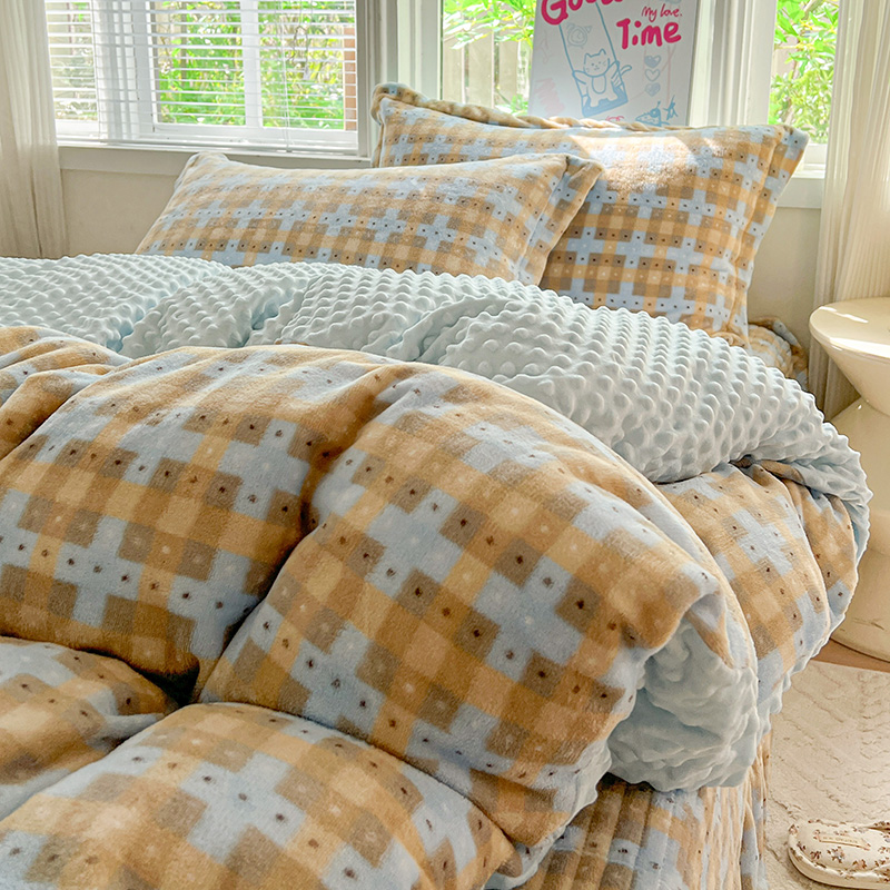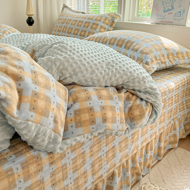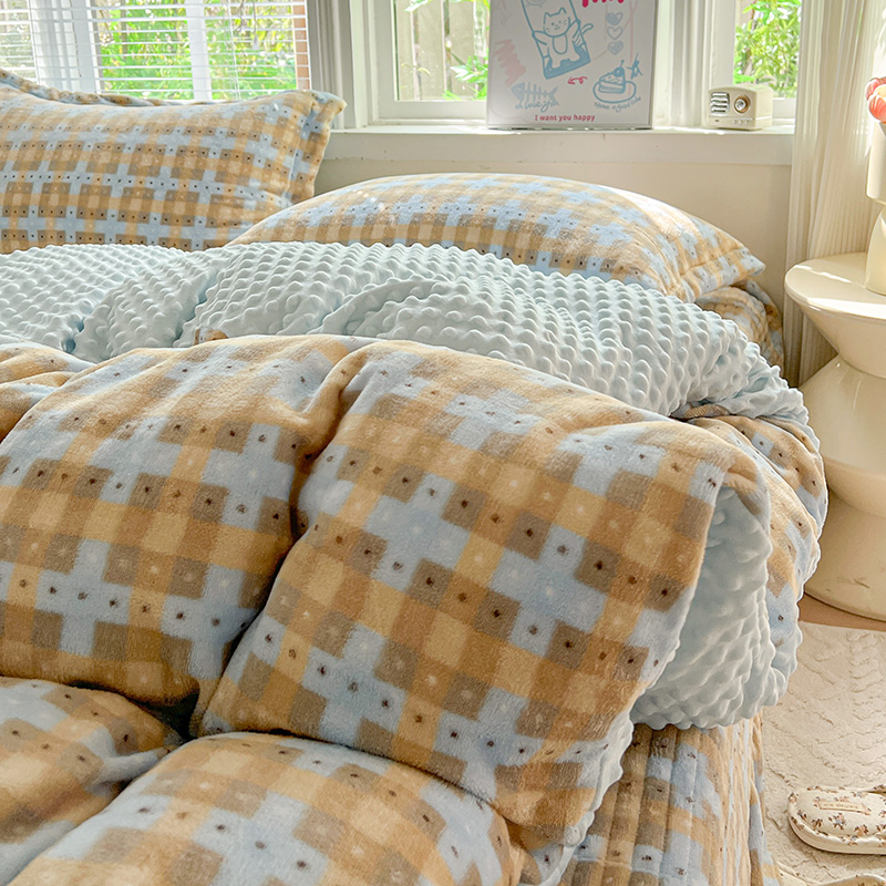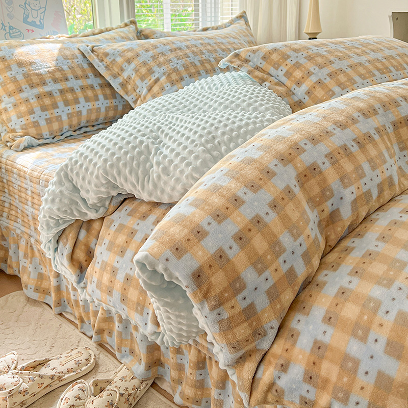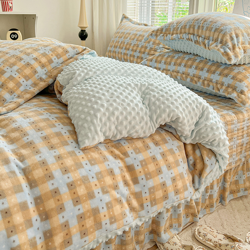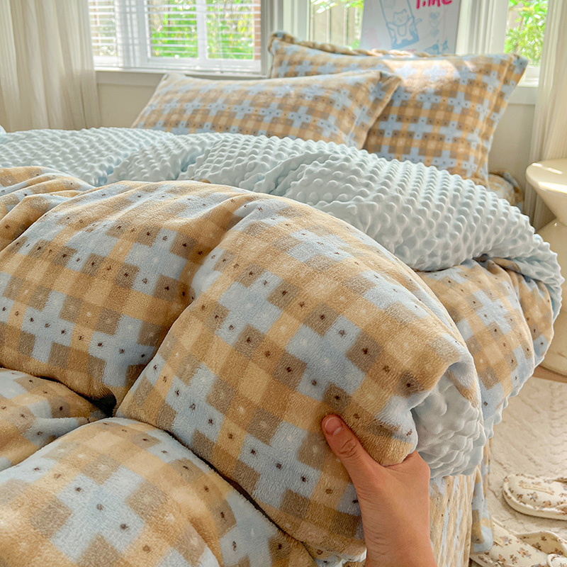 当前位置: 91家纺网 > 商品网购 > 床品套件 > 四件套 > 牛奶绒四件套 > 一比一 2025新款加厚保暖豆豆牛奶绒床盖款四件套简爱