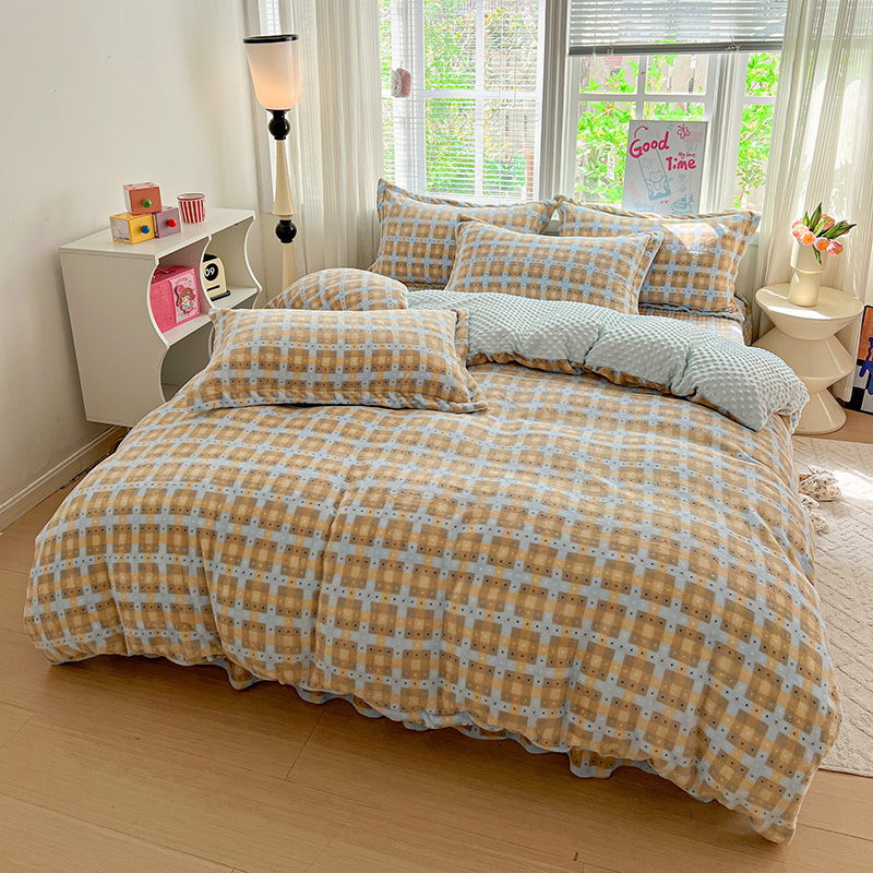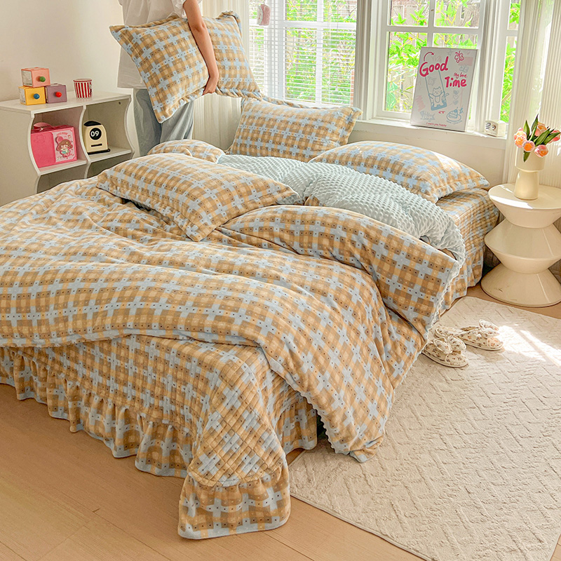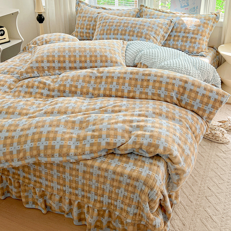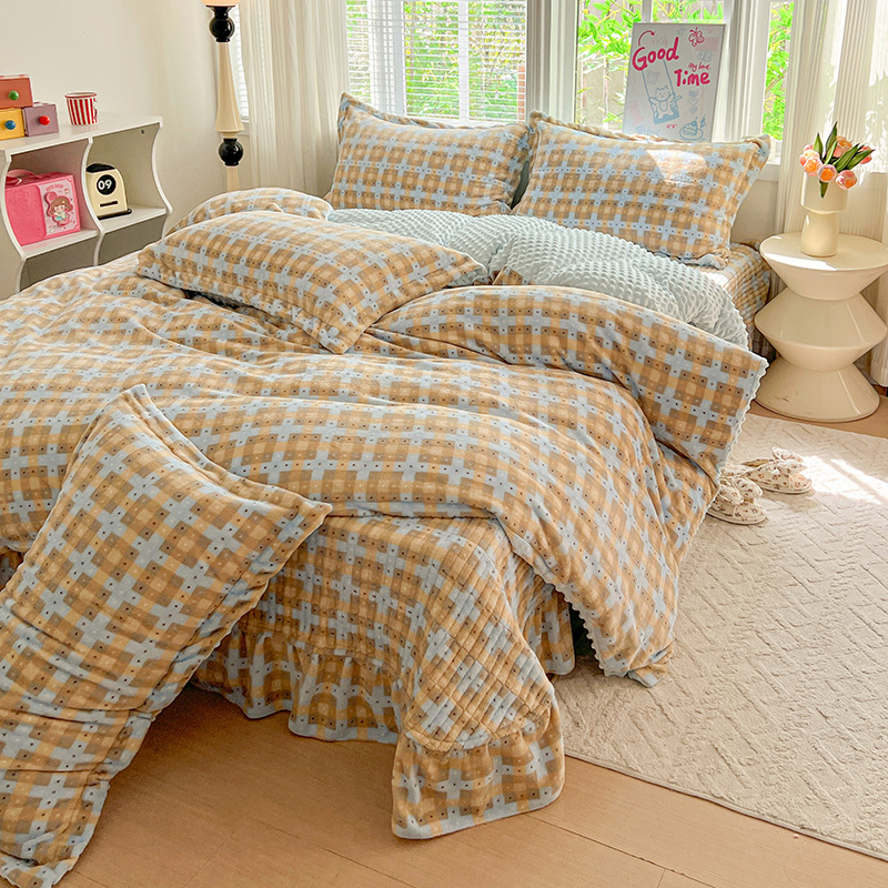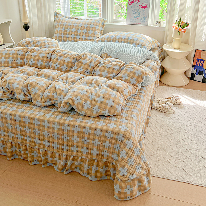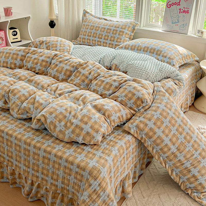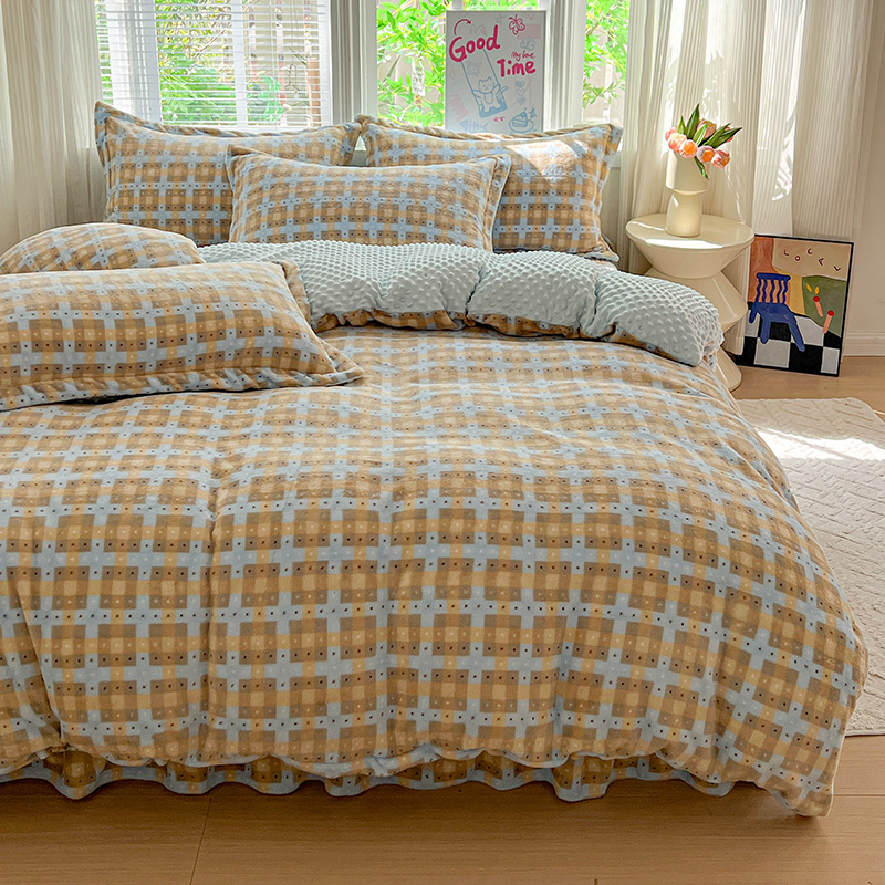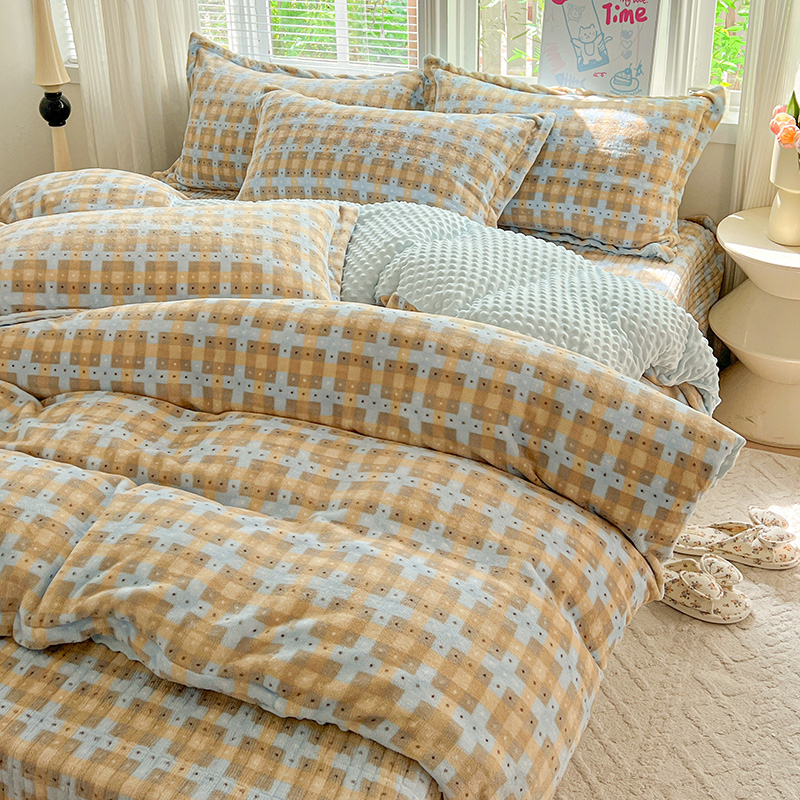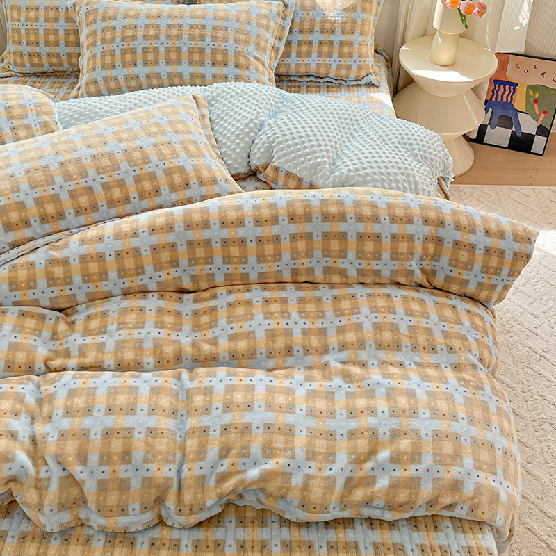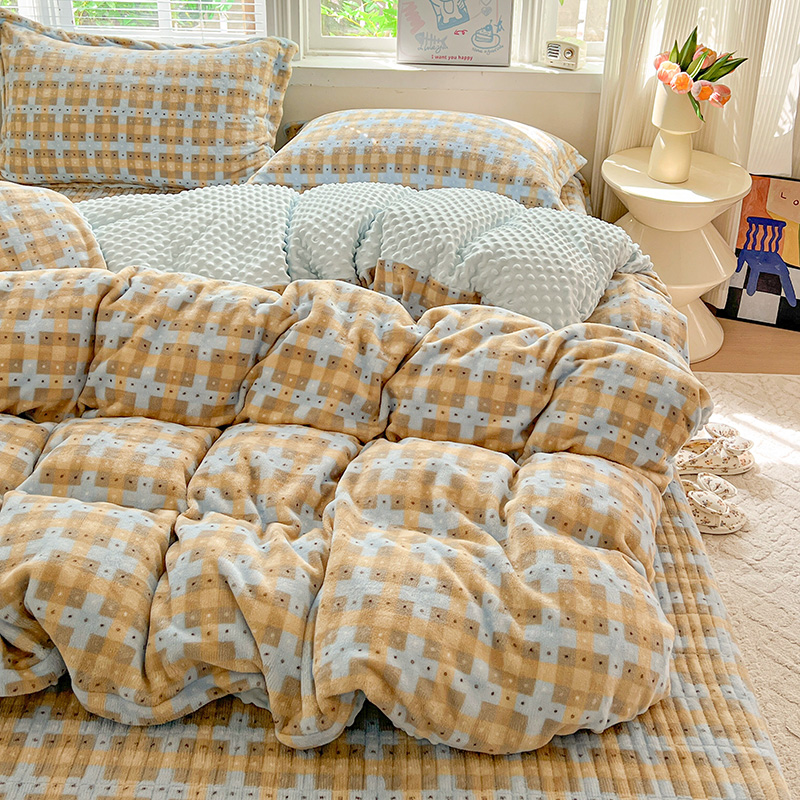 当前位置: 91家纺网 > 商品网购 > 床品套件 > 四件套 > 牛奶绒四件套 > 一比一 2025新款加厚保暖豆豆牛奶绒床盖款四件套简爱
