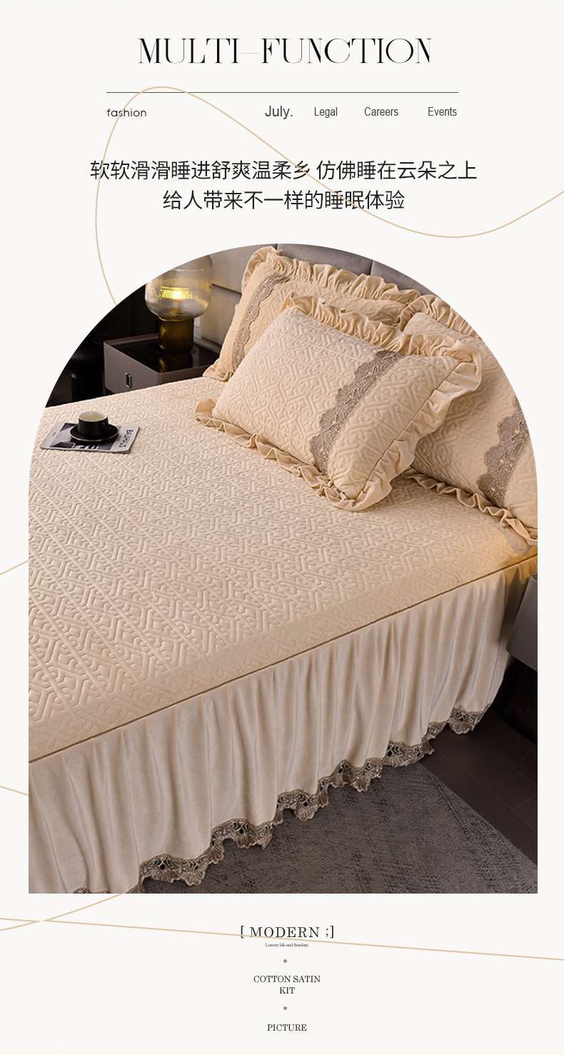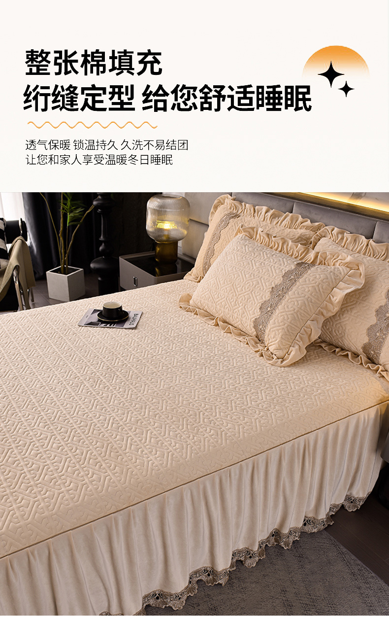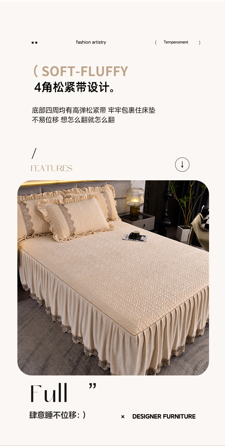 商品名称:忘忧草 2025新款婴儿绒夹棉单床裙 床裙单件-安娜系列 安娜-浅米驼