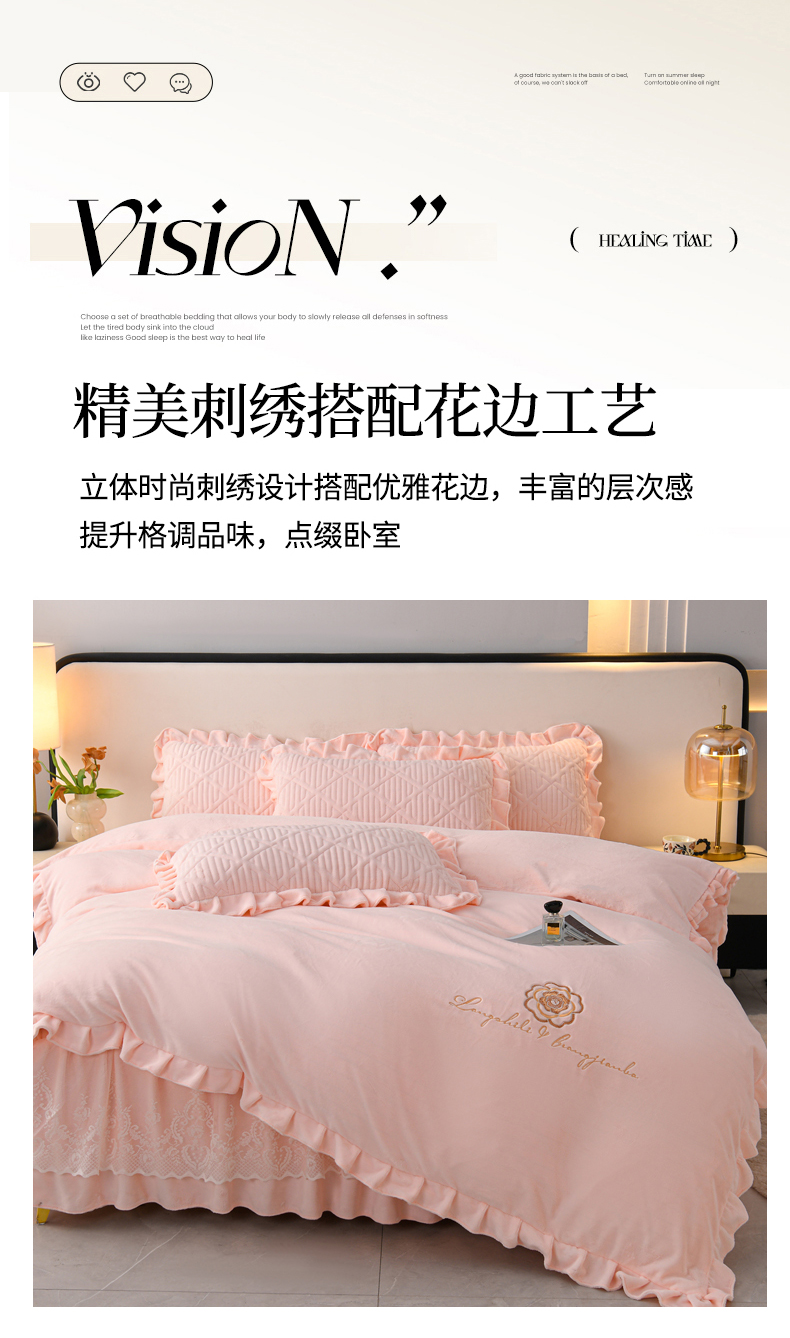 当前位置: 91家纺网 > 商品网购 > 床品套件 > 四件套 > 牛奶绒四件套 > 优家居 2025新品240克高克重牛奶绒韩版牛奶绒夹棉床裙四件套床裙三件套直播爆款 东方韵-浅粉
